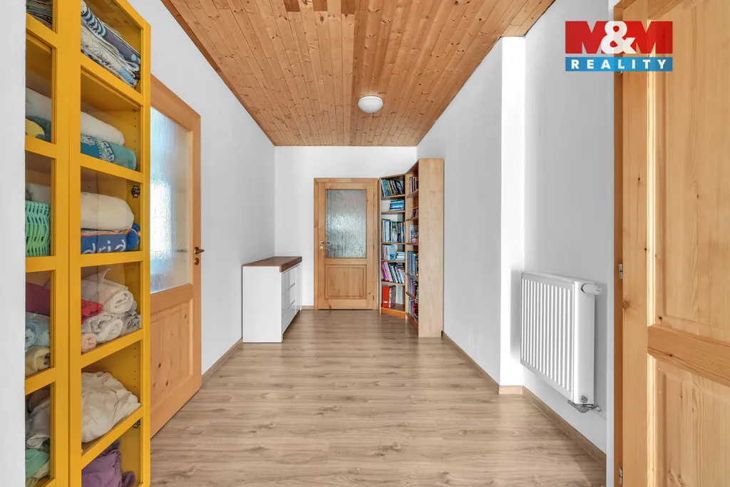Dům nabízí velkorysé obytné prostory s dostatkem denního světla, otevřenou dispozici hlavní obytné části s kuchyňským koutem a přímým vstupem na zahradu. Praktické uspořádání poskytuje dostatek prostoru pro rodinné bydlení, práci z domova i relaxaci.