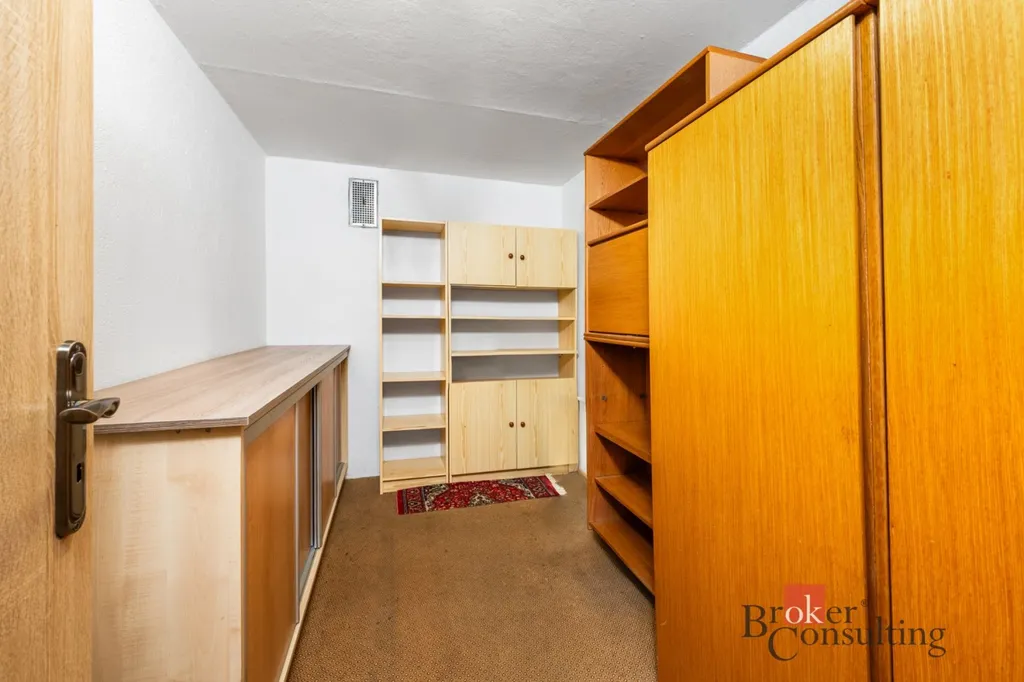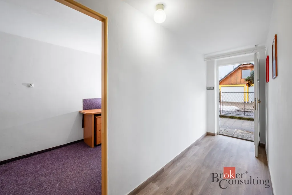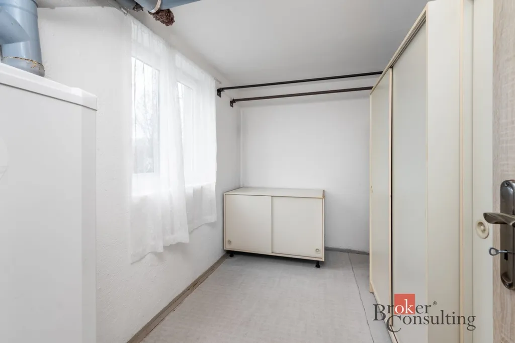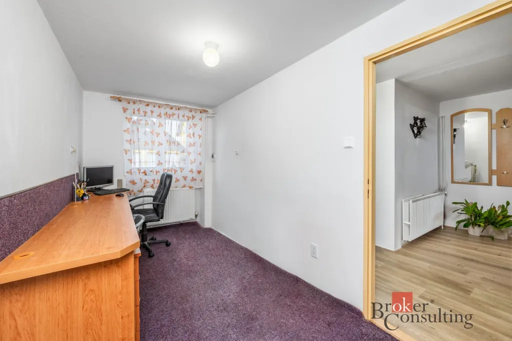 Dispozičně dům poskytuje dostatek soukromí i pro větší rodinu. V přízemí najdete prostornou garáž pro dvě vozidla, tři menší místnosti využitelné jako hobby prostor či pracovna, praktickou místnost pro ukládání potravin a technické zázemí. Hlavní část domu se pak rozkládá v patře, kde je velký obývací pokoj přes který se přechází do kuchyně. Také odtud vede vstup na prostorný balkon vybavený novým a voděodolným pryskyřično-pískovým kobercem. Také se na tomto patře nachází dvě ložnice a další dva samostatné pokoje. Koupelna je vybavena vanou se zástěnou pro pohodlné sprchování a dvěma umyvadly, toaleta je řešena samostatně. Pokud by vám přesto prostor nestačil, nevyužitá půda pod střechou nabízí skvělý potenciál k případné další vestavbě.