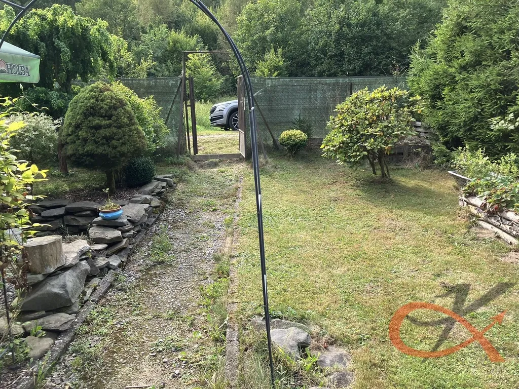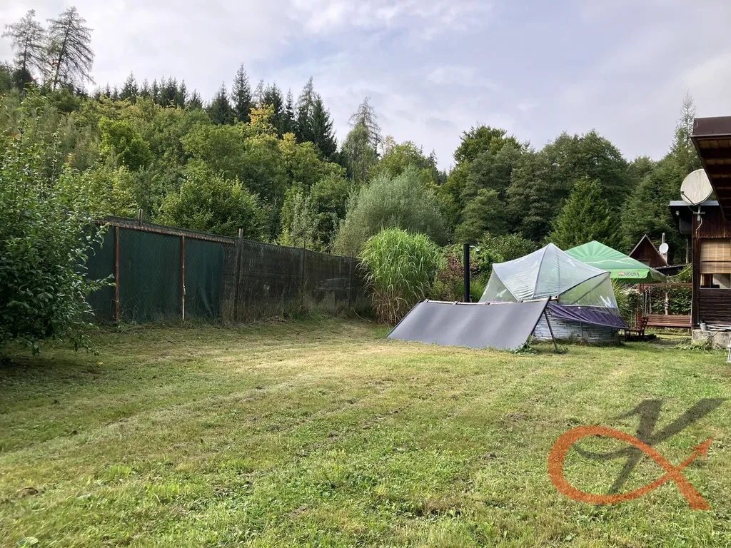 Před chatou se nachází prostor s možnosti venkovního posezení a dále okrasná zahrada, která nabízí prostor pro pěstování rostlin a ovocných stromů, nebo klidné relaxační chvíle v přírodě. Vedle chaty je situována dřevěná vedlejší stavba s přístřeškem ke skladování a nachází se v ní sprchový kout a suché WC. Ve vedlejší stavbě je instalován elektrický bojler na ohřev užitkové teplé vody. Užitková voda je rozvedena z nádrže přes domácí vodárnu do kuchyně a do sprchy a je rovněž rozvedena pro zalévání záhonu. Pitná voda na pozemku není.