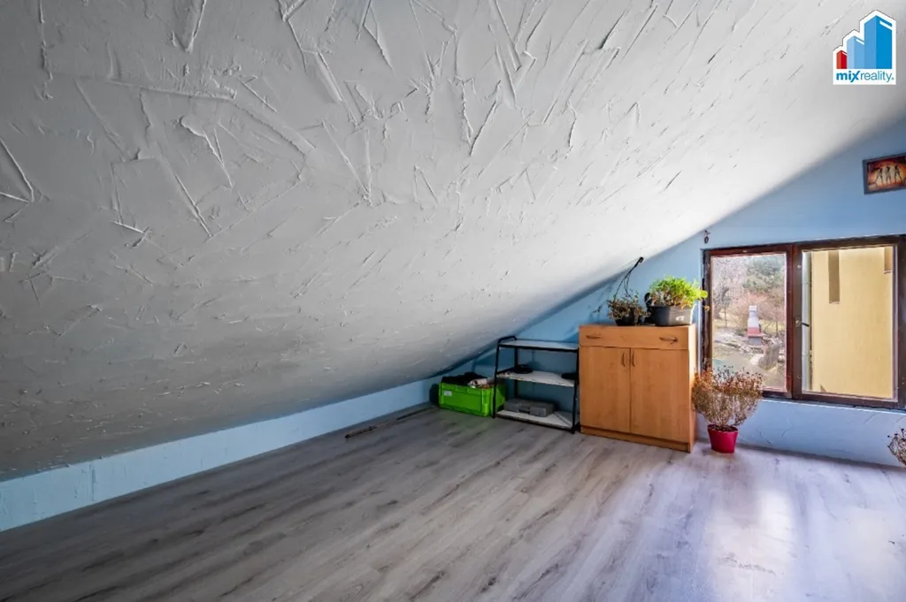 V podkroví jsou dva samostatné pokoje, další obytný prostor vhodný jako pracovna či pokoj pro hosty a koupelna s WC před dokončením.