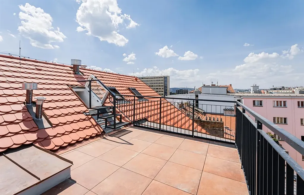 Prostorný podkrovní duplex 4+kk (galerie, plus 2 ložnice, 2 koupelny) s terasou (13,5 m2) a galerií (19,98 m2), o obytné ploše 107,1 m2, je situován v 5. a 6. patře právě rekonstruované rezidenční budovy s výtahem v populární lokalitě Žižkov na Praze 3, v ulici Seifertova.