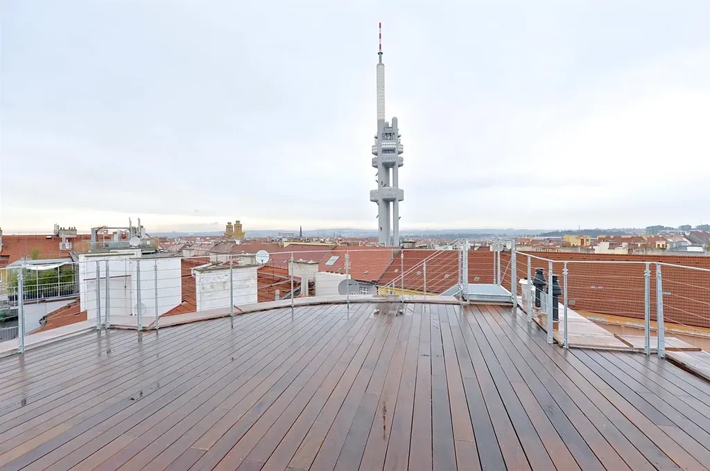 Luxusní moderní byt 2+kk se dvěma terasami (40m2 ; 60m2), je situovaný v prestižní rezidenční lokalitě Vinohrady. Byt je situovaný v 6.NP reprezentativního zrekonstruovaného domu s výtahem, přímo na náměstí Jiřího z Poděbrad.