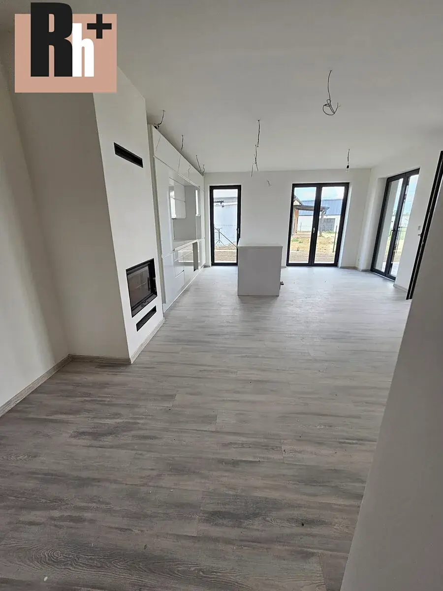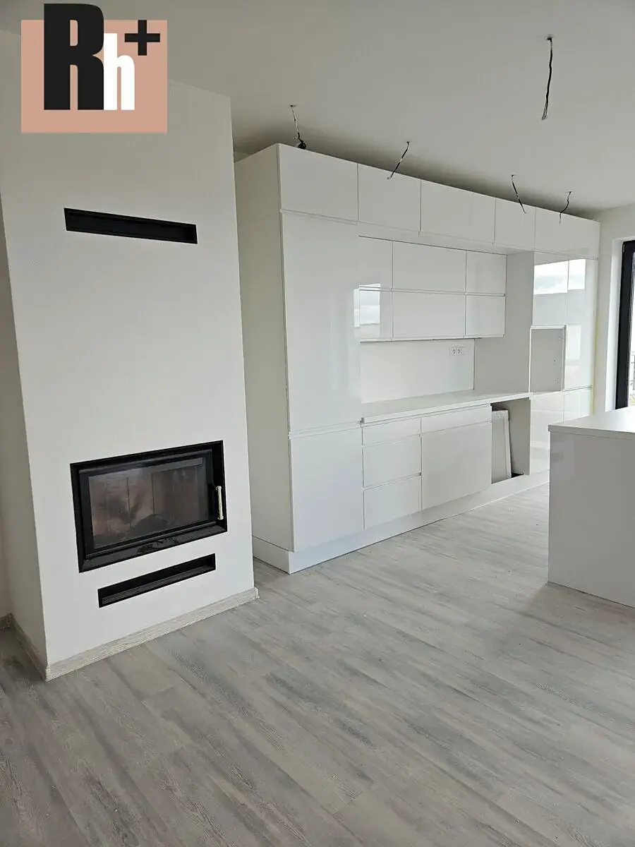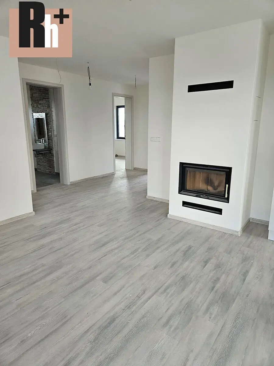 Obývací pokoj potěší i krbem v moderním designu, který slouží jako podružný zdroj tepla a zpříjemní Váš pocit během chladnějších dnů.