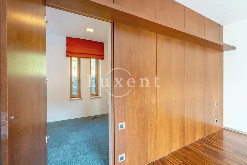 Nabízíme k prodeji krásný stylový dvoupodlažní rodinný dům v Tuchoměřicích o dispozici 5+kk na pozemku o velikosti 1.135 m². Dům je umístěný na kopci v klidné rezidenční lokalitě s panoramatickým výhledem na Tuchoměřice a okolní krajinu. Byl postavený v roce 2010 a získal nominaci v soutěži Stavba roku a také nominaci v kategorii "Nízkoenergetický dům pro bydlení v technologii dřevostavba".