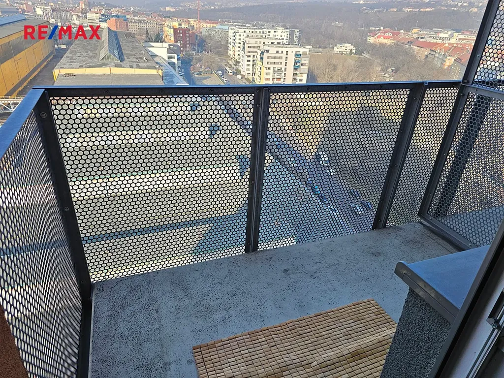 Pronájem bytu 1+kk s balkonem, ul.Freyova, P-9. Byt se nachází ve 13.patře rezidence Eliška. Byt je kompletně zařízený nábytkem, kuchyňská linka, sklokeramická dvouplotýnka, myčka, lednice s mrazákem, mikrovlnka, pračka v koupelně. V předsíni vestavěná skříň. Koupelna se sprchovým koutem a WC, vedle koupelny malá komora. K bytu náleží sklep. V přízemí domu recepce. Měsíční poplatky 4.200,- Kč + převod elektřiny na nájemce. Kauce 20.000,- Kč. V okolí rezidence je veškerá občanská vybavenost, cyklostezka atd. V domě je možno si k bytu pronajmout parkovací stání. Na metro B stanice Vysočanská 8 min chůze.
