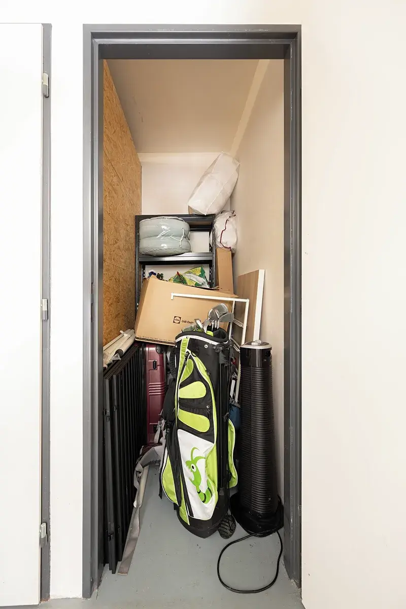 V celém bytě je dostatek úložných prostor v podobě vestavěných skříní v obou pokojích, vstupní chodbě a již zmiňované komoře v kuchyni. K bytu dále náleží sklep v přízemí domu.