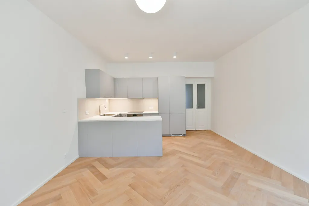 Pronájem krásného, novotou vonícího bytu 2+kk, cca 65 m2, po kompletní nákladné rekonstrukci. Byt je umístěný ve 2.patře pečlivě udržovaného činžovního domu na rozhraní Vinohrad a Vršovic. K dispozici je prostorný obývací pokoj s kuchyňským koutem (cca 26 m2) a zcela novou kuchyňskou linkou s vestavěnými spotřebiči (indukční varná deska, myčka nádobí, lednice s mrazákem), který je orientovaný na jižní stranu do ulice. Severním směrem do klidného vnitrobloku směřuje prostorná ložnice (cca 20 m2) s velkou šatnou (cca 3,5 m2). V koupelně je vana, WC a nový kondenzační kotel Vaillant. V praktické komoře (cca 3,5 m2) je i prostor pro pračku a sušičku a v předsíni nová vestavěná šatní skříň. Ideální bydlení pro pár nebo náročného jednotlivce. Výborná lokalita s dobrou dopravní dostupností. Majitel bytu si nepřeje zájemce se psy. Poplatky cca 1.900,-Kč jedna osoba, 2.774,- Kč (2 osoby), plus elektřina a plyn převod na nájemce. Volné ihned.