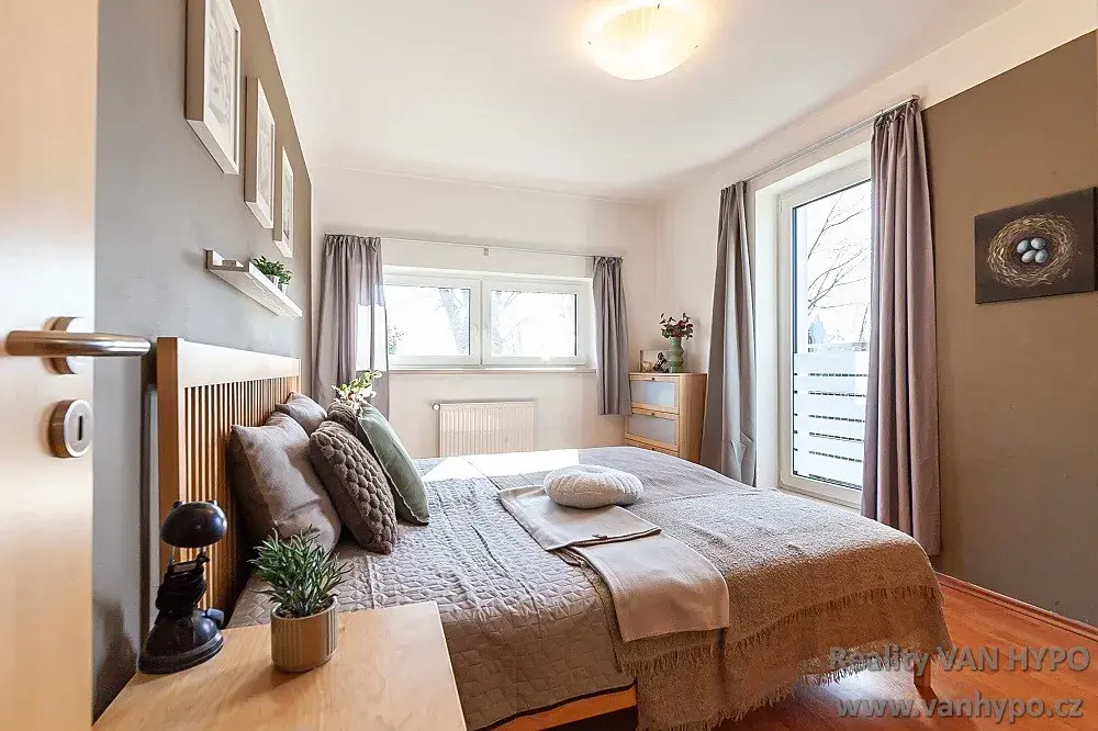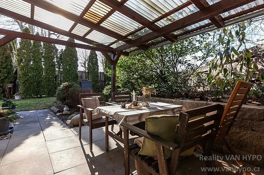 Světlý a útulný interiér nemovitosti je vybaven okny s izolačními trojskly, kvalitní kuchyňskou linkou, interiérovými dveřmi s dýhovým povrchem, plynový kotlem pro ohřev vody a topení. Samozřejmostí je i stabilní vysokorychlostní internetové připojení. Součástí je i zahrada v osobním vlastnictví o rozloze 218 m2 s několika příjemnými zákoutími, krytou terasou, vzrostlými stromy a vysokým plotem. Pro parkování jsou vymezena 2 stání na přilehlém pozemku v podílovém spoluvlastnictví o velikosti 2/3, který je součástí prodeje.