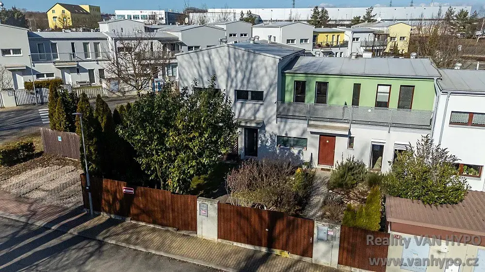 Dvoupodlažní moderně pojatá jednotka s vlastní udržovanou zahradou tvoří polovinu rodinného dvojdomu situovaného v rezidenční části obce Jinočany.