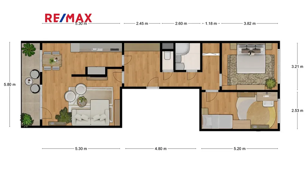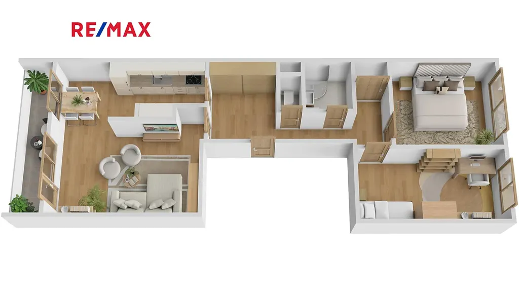 Byt je vhodný i pro větší rodinu a dá se ještě prostorově dispozičně upravit dle Vašich individuálních potřeb a přání.