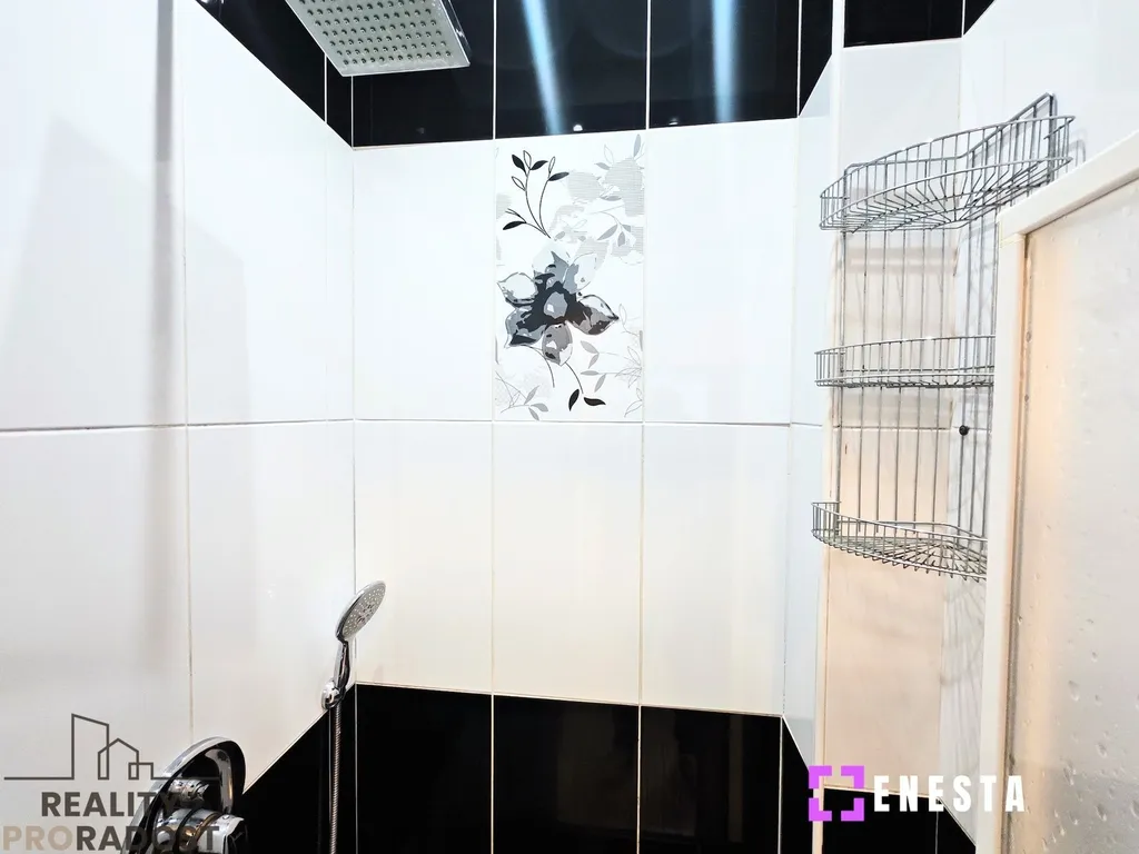 Byt se pronajímá částečně zařízený nábytkem zachyceným na fotografiích. K dispozici zůstává jídelní stolek se dvěma židlemi, jedna barová židle, skříň ve vstupní chodbě a velká úložná skříň v šatně.