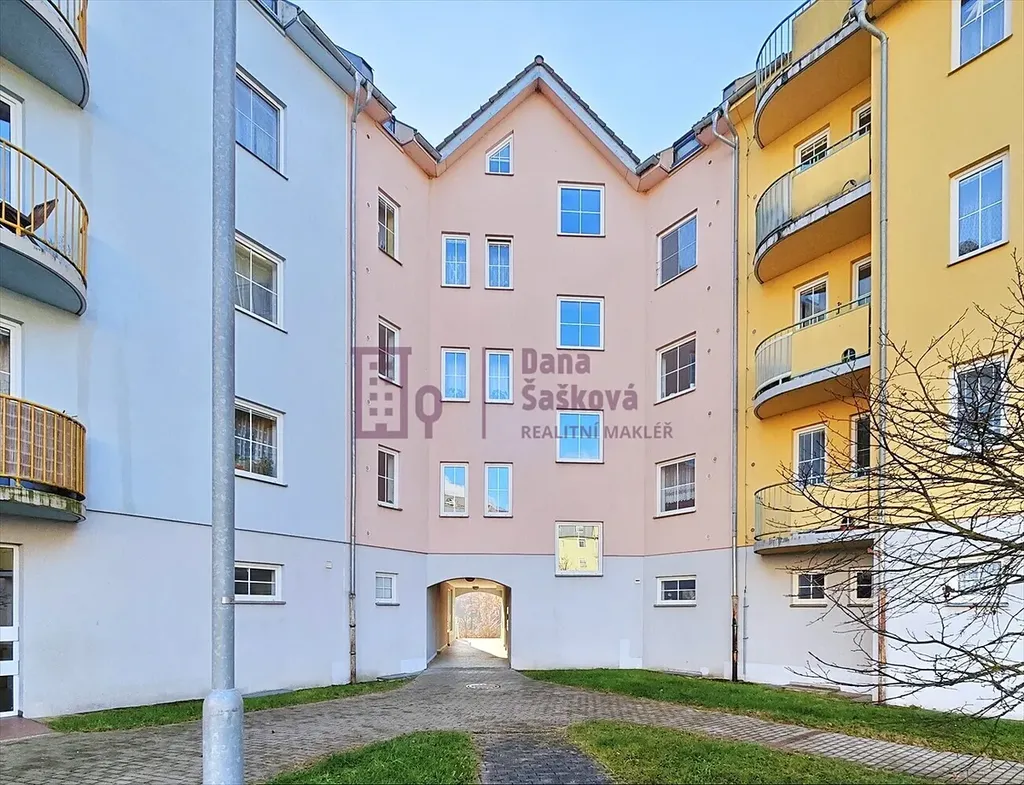 Pronájem bytu s podlahovou plochou 23 m2 v prvním patře bytového domu na ulici Nušlova, Jindřichův Hradec.