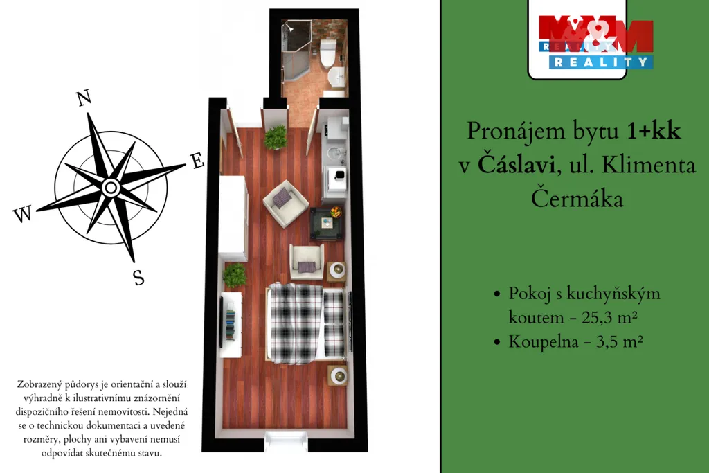 Pronájem bytu 1+kk, Čáslav - Čáslav-Staré Město, Klimenta Čermáka, 28 m2 (ID: 1978213)