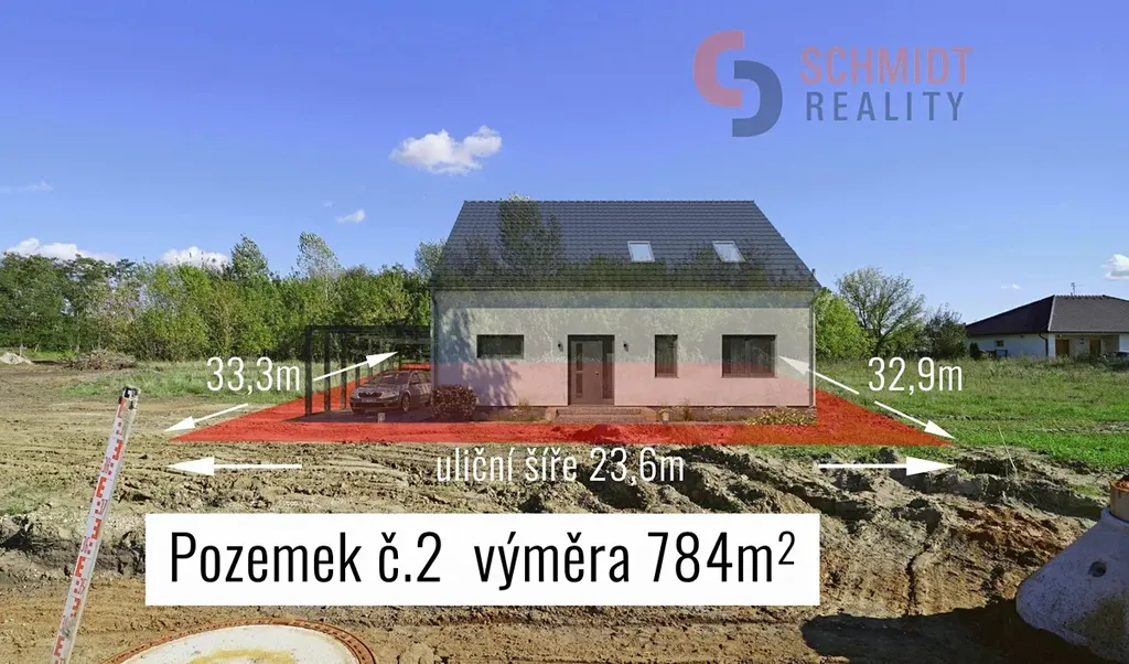 Parcely jsou řešeny optimálně pro dům i rozlehlou zahradu. Výběr parcel od 617m2 do 936m2. Například pozemek č.2 s výměrou 784m2 má rozměr 23 metrů uliční šíře a hloubku 31 metrů.