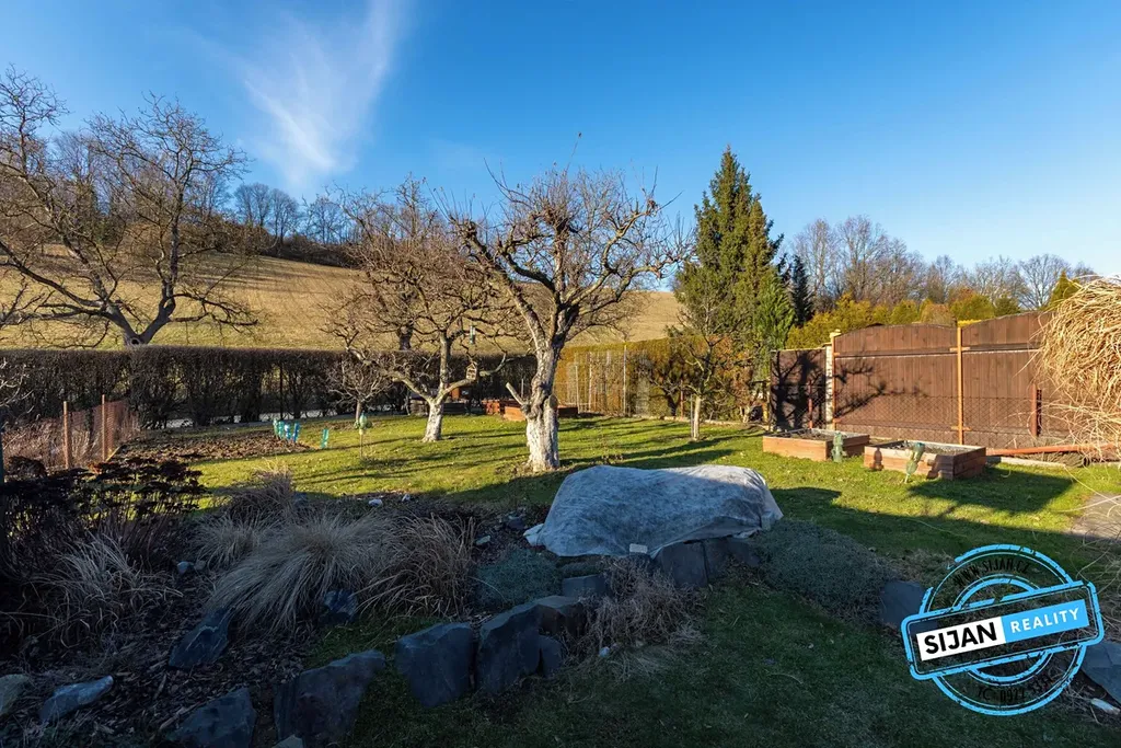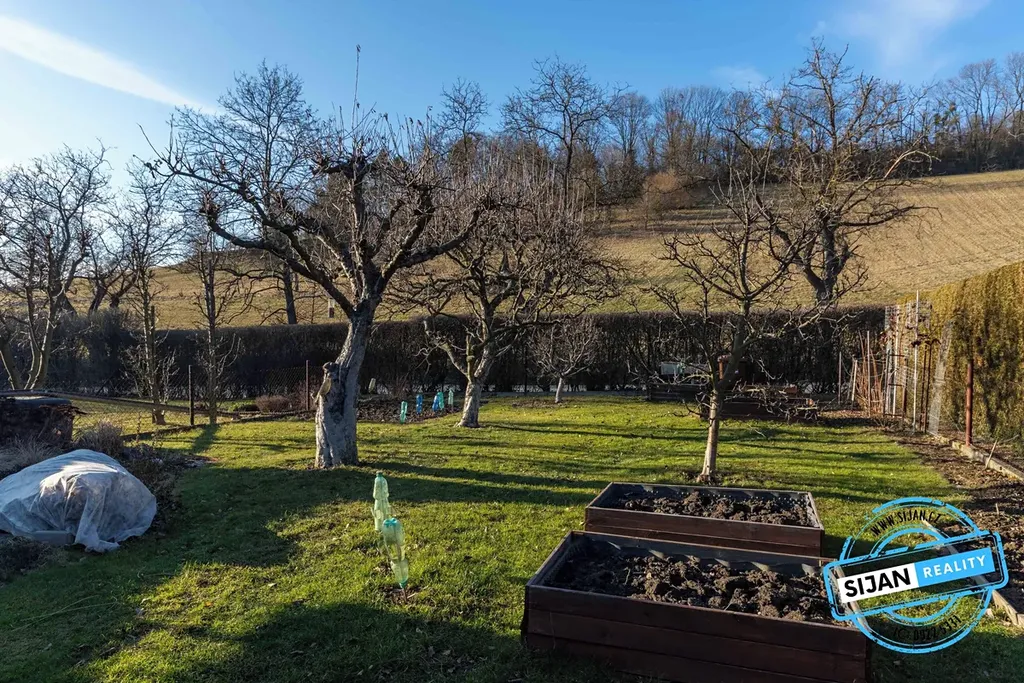 Dále je k dispozici terasa, maličký sklep, dřevník a půda.