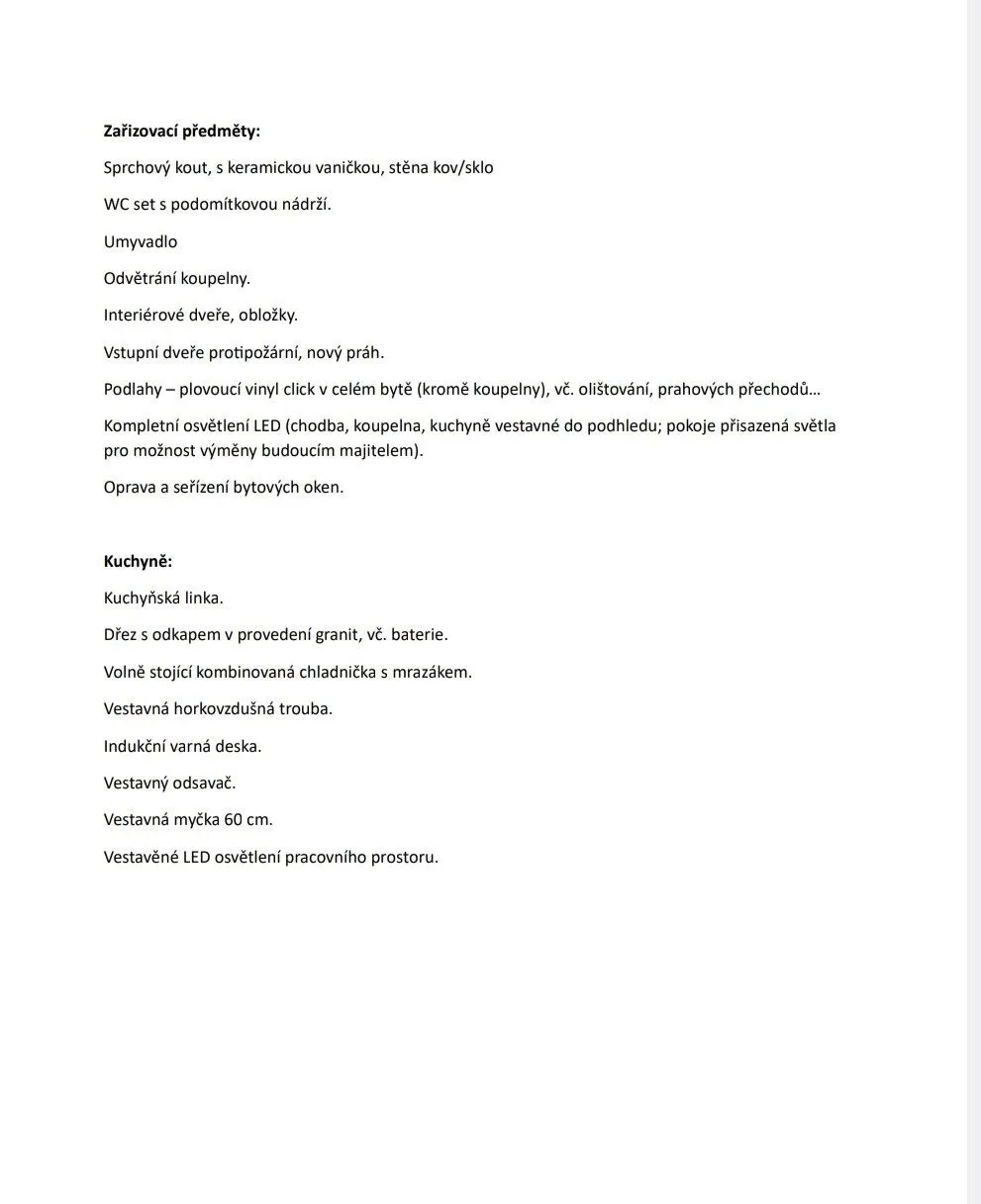 Nabízím Vám exkluzivně k prodeji nádherný, plně a nově zrekonstruovaný byt 1+1 o výměře 39m2 v 1.patře revitalizovaného, panelového domu s výtahem, ulice Kralovická, Plzeň - Bolevec. Byt tvoří koncept kuchyně s menším obývacím koutem na který navazuje samostatný pokoj. Byt prošel profesionální rekonstrukcí v tomto roce 2026 (komplexní, technický soupis prací přikládám ve fotogalerii). Kuchyň je vybavena novou kuchyňskou linkou s vestavěnými spotřebiči (myčka 60cm, indukční varnou deskou, vestavnou horkovzdušnou troubou, samostatnou kombinovanou chladničkou s mrazákem). Okna jsou nasměrována do stromů, byt tak působí vzdušně a přívětivě. Do kuchyně se vám vejde dle přiložené vizualizace i sedací souprava i jídelní stůl, a tak můžete tento prostor využívat variabilně. Samostatný pokoj skýtá příjemný prostor pro vaši ložnici i například menší pracovnu, dle libosti. Byt doplněn novými interiérovými dveřmi v bílém provedení a posuvnými dveřmi do pouzdra do koupelny. Položena je nová plovoucí vinyl click systém podlaha. Koupelna v jemném, šedém tónu podtržena praktickým sprchovým koutem, opatřena chytře zvoleným umyvadlem, toaletou a přípojkou na pračku. Majitel dbal na důkladné provedení stropů formou sníženého sádrokartonového podhledu, podhled je parotěsně, tepelně i hlukově izolovaný, zde osazena nová LED osvětlení, nové rozvody internetu a TV samozřejmostí. Kralovická ulice v Bolevci se stala atraktivní lokalitou pro bydlení i investici. V dosahu domu se nachází supermarkety, četné množství spojů MHD, sportovní vyžití a nejkrásnější soubor Boleveckých rybníků k procházkám, koupání a dalším aktivitám. Najdete zde klidné a kvalitní zázemí pro život. Do centra je to do 10 minut autem, parkování před domem. Nechte se inspirovat naší přiloženou vizualizací a přijďte se zabydlet jako první do bytu, který je zde pro vás připravený. Vhodný i jako investice do budoucna, další fotografie připravujeme, prohlídka umožněna.