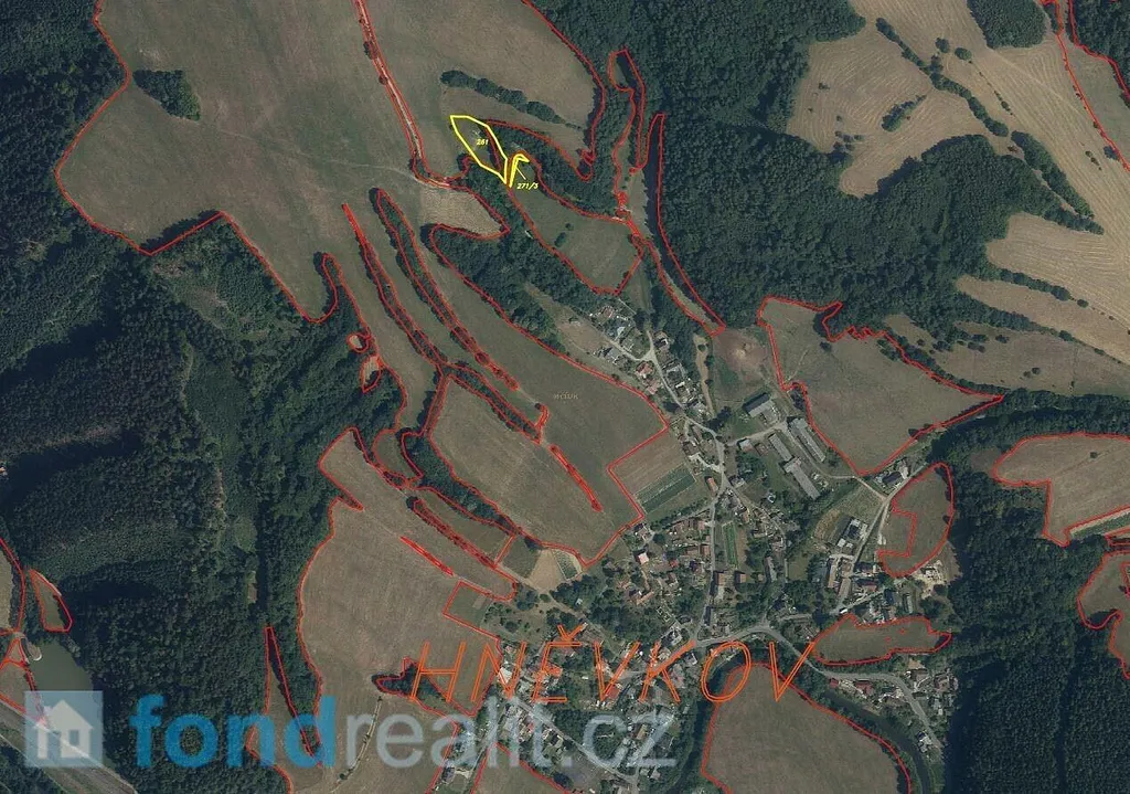 Předmětem dražby jsou pozemky o celkové výměře 2 481 m² u obce Hněvkov v okrese Šumperk. V katastru nemovitostí jsou vedeny jako trvalý travní porost a orná půda.