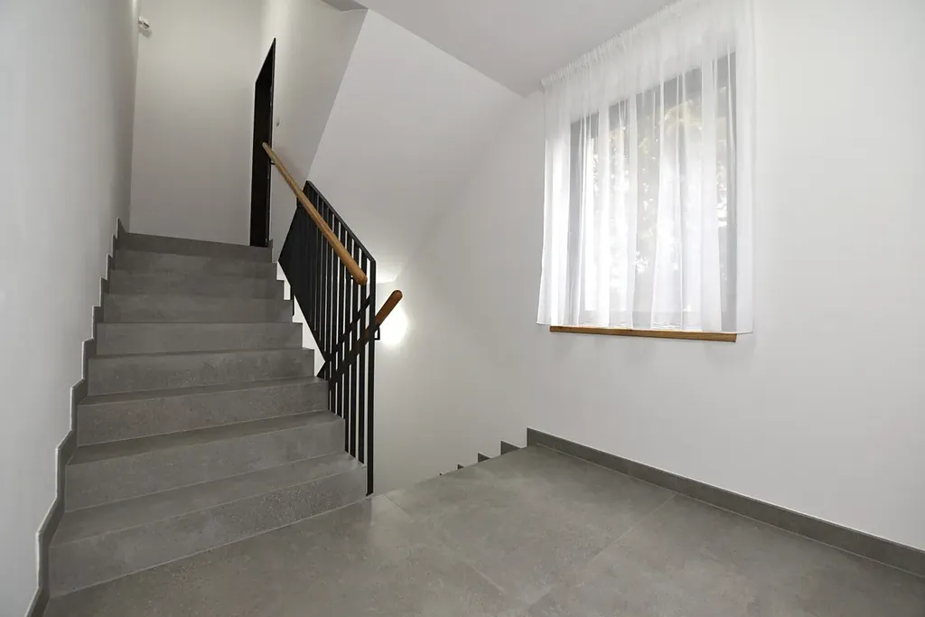 - designová koupelna zařízená vanou s podhlavníkem, vanovou zástěnou pro sprchování, multifunkční sprchou, umyvadlem s umyvadlovou skříňkou, zrcadlem, otopným žebříkem, závěsnou toaletou s bidetovou sprchou, ventilátorem s přímým odtahem zápachu z toalety, luxusní španělskou velkoformátovou kamennou dlažbou s kamenickými rohy, příprava na připojení pračky a separátní sušičky