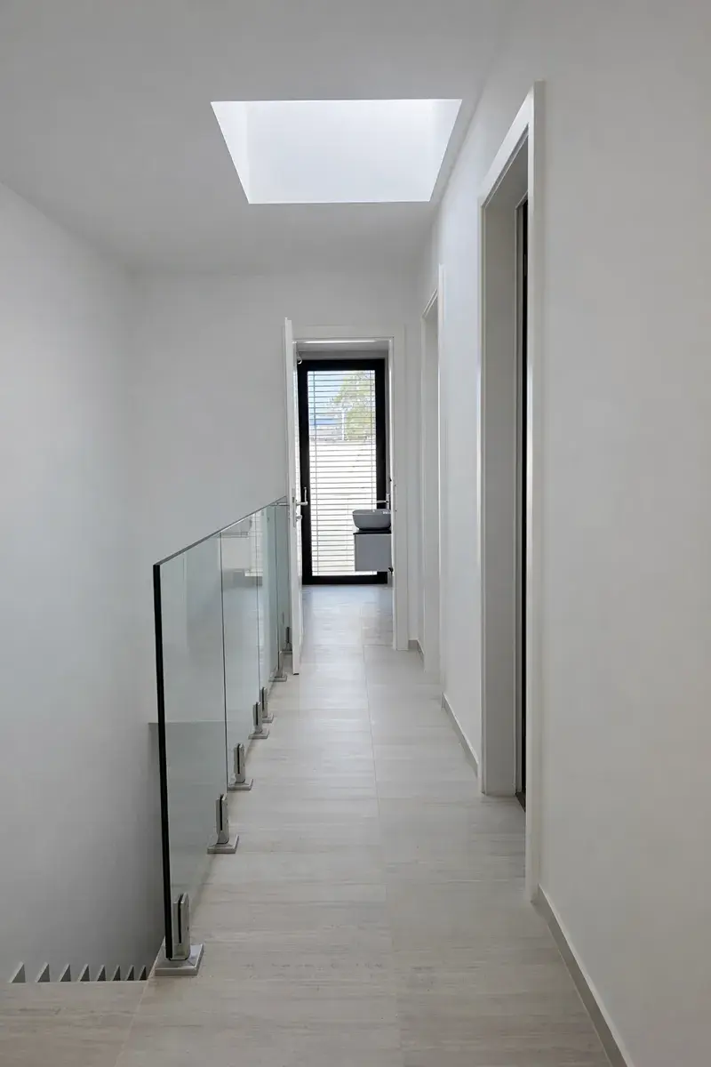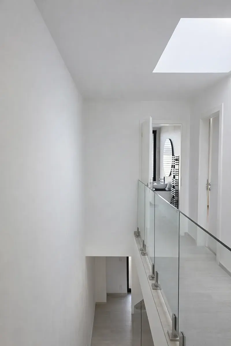 - moderní skleněné zábradlí na schodišti