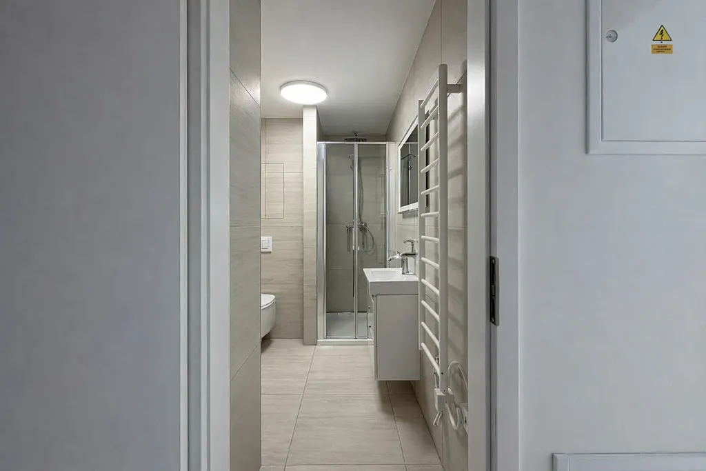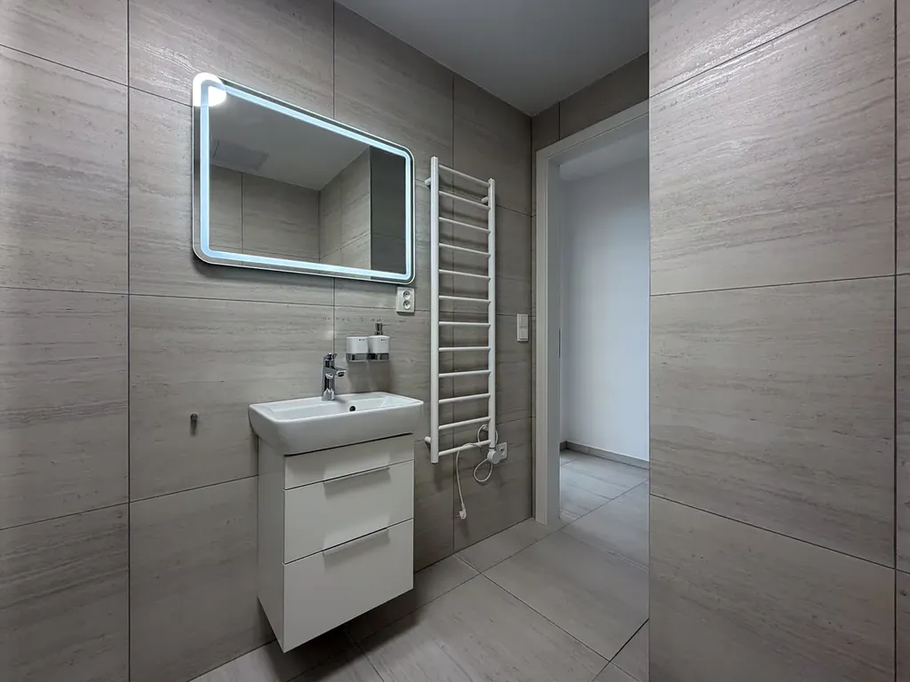 - zcela vybavená koupelna se sprchovým koutem a přípravami pro napojení pračky/sušičky,