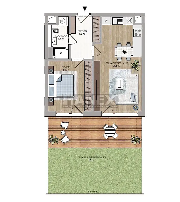 Moderní byt 2+kk (budova D) s privátní zahrádkou s výhledem do přírodního parku Cibulka. Rezidenční projekt AALTO Cibulka stojí na samém okraji přírodního parku Košíře – Motol a tvoří tak přirozený přechod mezi přírodou a městem. Interiér bytu tvoří obývací pokoj s kuchyňským koutem a vstupem na terasu a do zahrady (42 m2). Dále je zde samostatná ložnice, koupelna se sprchovým koutem a WC. V jednotce je alarm, automatické zavlažování zahrady. Byt je jižně orientovaný s výhledem do lesa. K bytu náleží sklep a velké (invalidní) parkovací stání v garáži. Byt se prodává včetně zařízení.