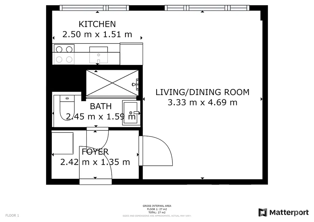 Pronájem bytu 1+kk, Praha - Prosek, Bílinská, 27 m2