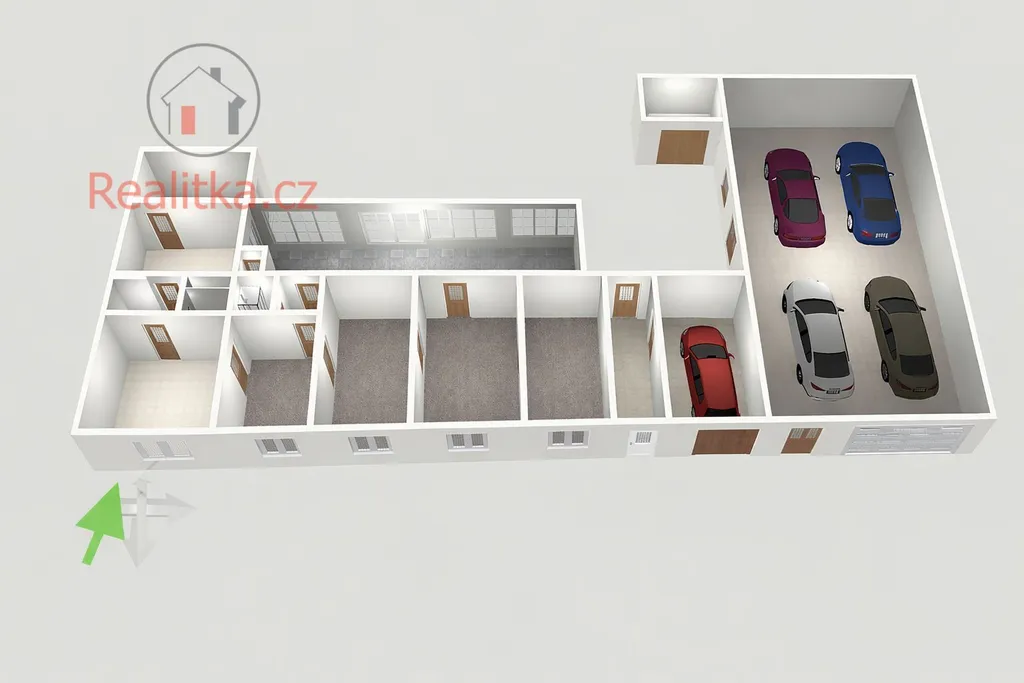 Předmětem pronájmu je prostor o velikosti cca 700 m2, z toho zastavěná plocha činní 422 m2 + velká prostorná garáž o velikosti celkem 141 m2, která má pojezdové vrata a vlastní vchod.