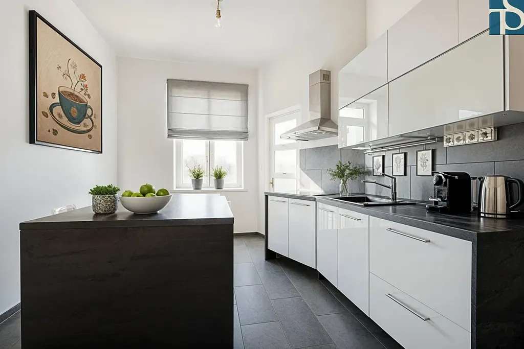 Kompletní rekonstrukce proběhla v roce 2015 a letos v únoru dostal byt další péči, která mu vrátila svěžest a eleganci, např. je nově vymalováno, jsou přebroušené a nalakované dubové parkety, které dodávají bytu teplo a charakter, nová kuchyňská deska a dřez, nový sprchový kout, umyvadlo i všechny baterie. Rovněž i sklepu se dopřála revitalizace, kdy se provedl nový podlahový nátěr a také byl vymalován.