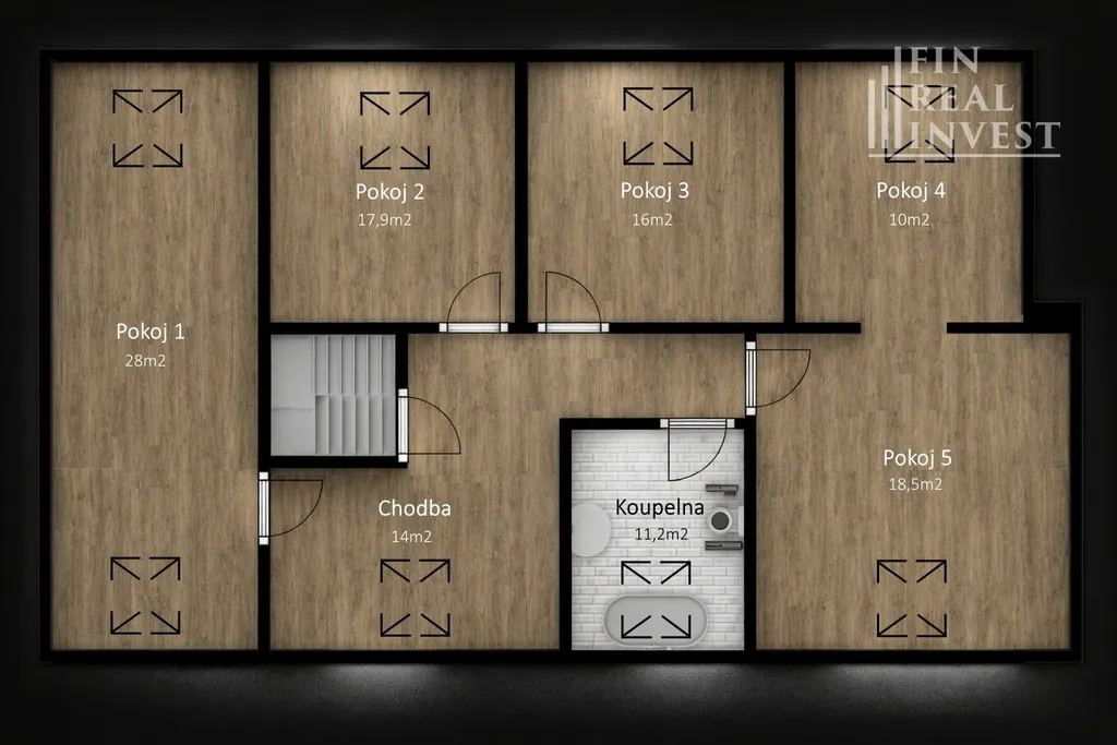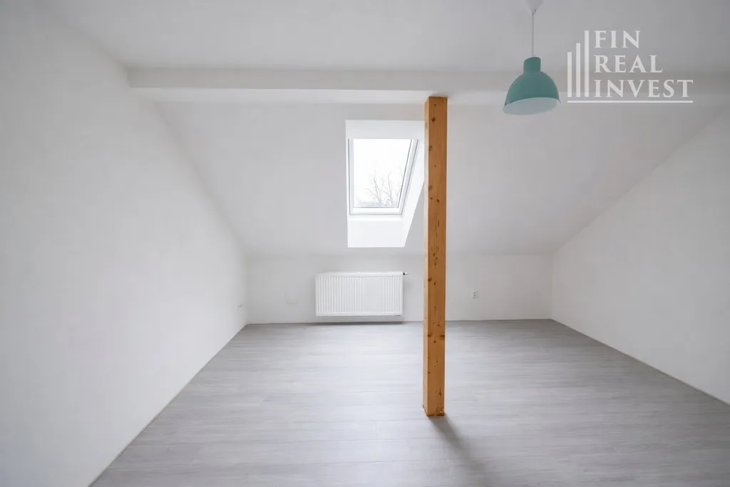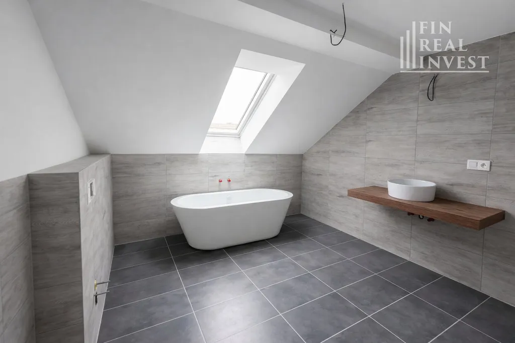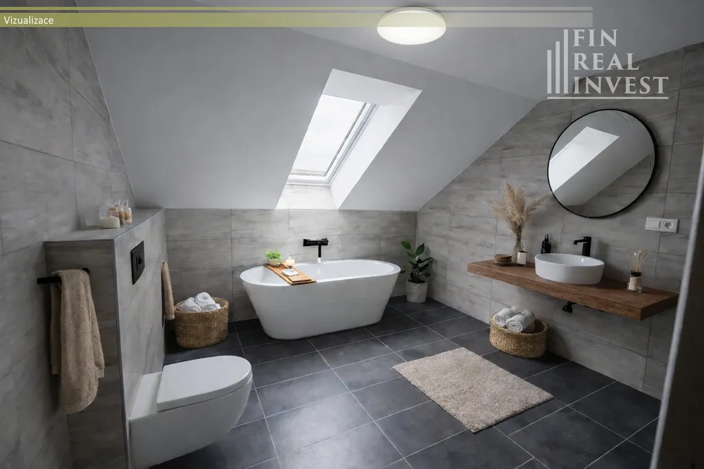 Horní patro je téměř dokončeno a otevírá široké možnosti využití – dětské pokoje, pracovna, ateliér, domácí fitness či další obytné místnosti. Pro finální dokončení je potřeba osadit zábradlí u schodiště, obložky dveří, podlahové lišty, namontovat svítidla a dokončit vodoinstalaci v koupelně. Nový majitel tak může doladit finální detaily podle vlastních představ.