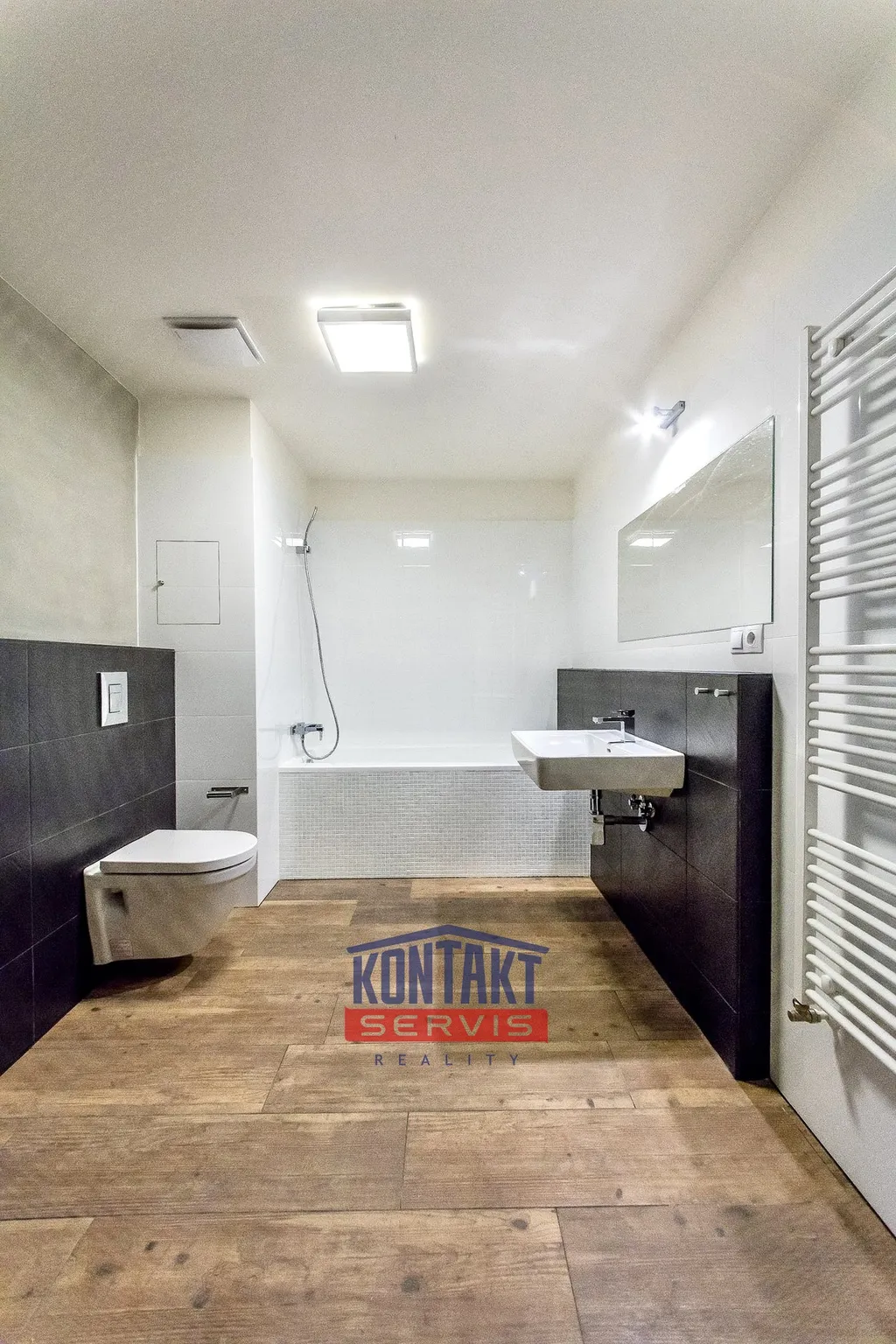 Samostatná ložnice, koupelna vybavena umyvadlem s pákovou baterií, toaletou a vanou s perličkovou lázní. Součástí bytu je také prostorný sklep o výměře 6 m².
