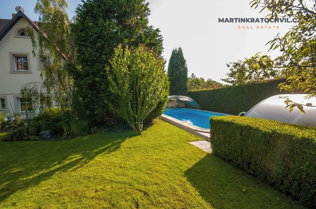 Exkluzivně nabízím k prodeji prostornou reprezentativní vilu s dvojgaráží, venkovním bazénem a zahradou v prestižní lokalitě Prahy 4 – Braník.