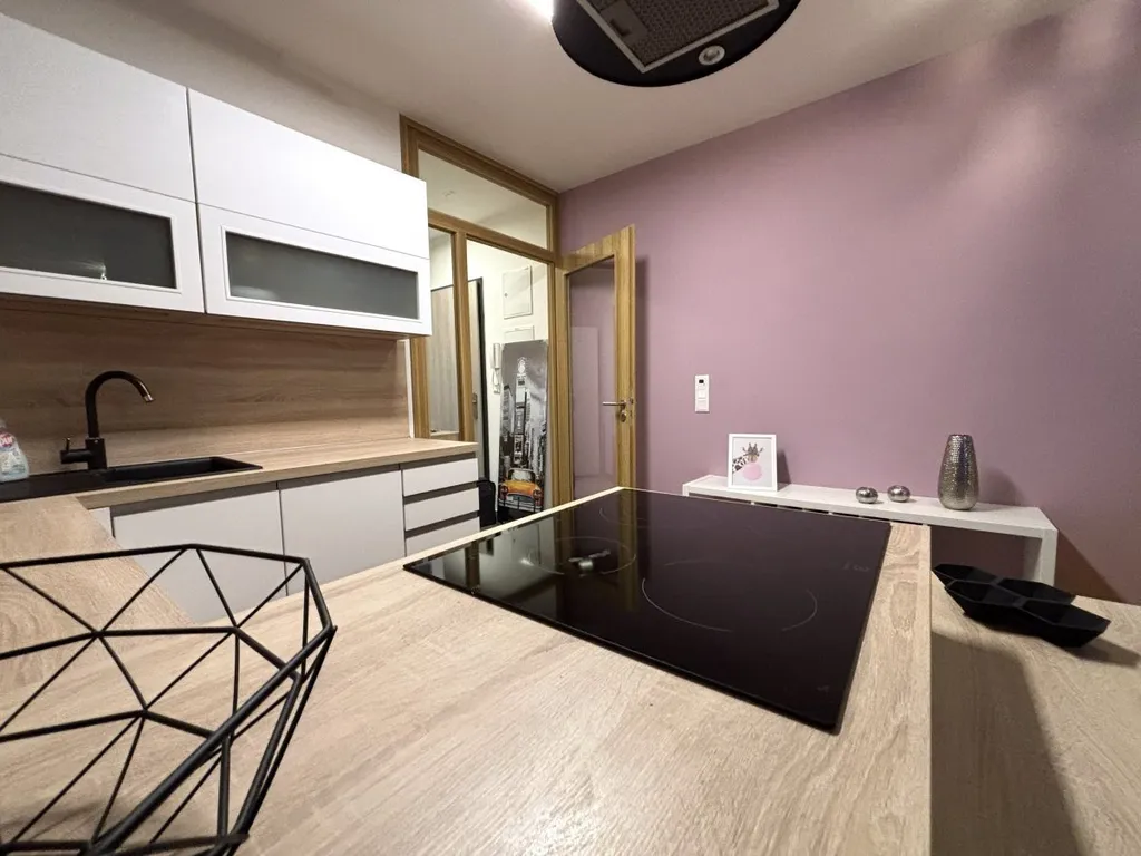 Interiér je ve velmi dobrém stavu a působí vzdušně i útulně zároveň. Hlavní obytná část chytře propojuje kuchyňský kout s obývacím prostorem a klidovou zónou pro spánek – ideální pro jednotlivce nebo pár, kteří chtějí mít město doslova na dosah. Díky plnému vybavení je byt připraven k okamžitému komfortnímu užívání bez dalších investic.