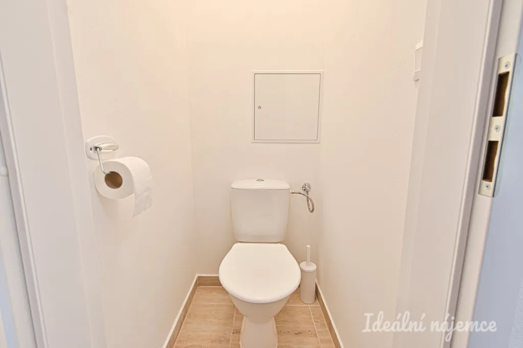 Koupelna je vybavena sprchovým koutem a zrcadlovou skříňkou s úložným prostorem, toaleta je oddělená. V bytě nechybí ani praktická komora, která poskytne dostatek místa pro věci, které nechcete mít stále na očích.