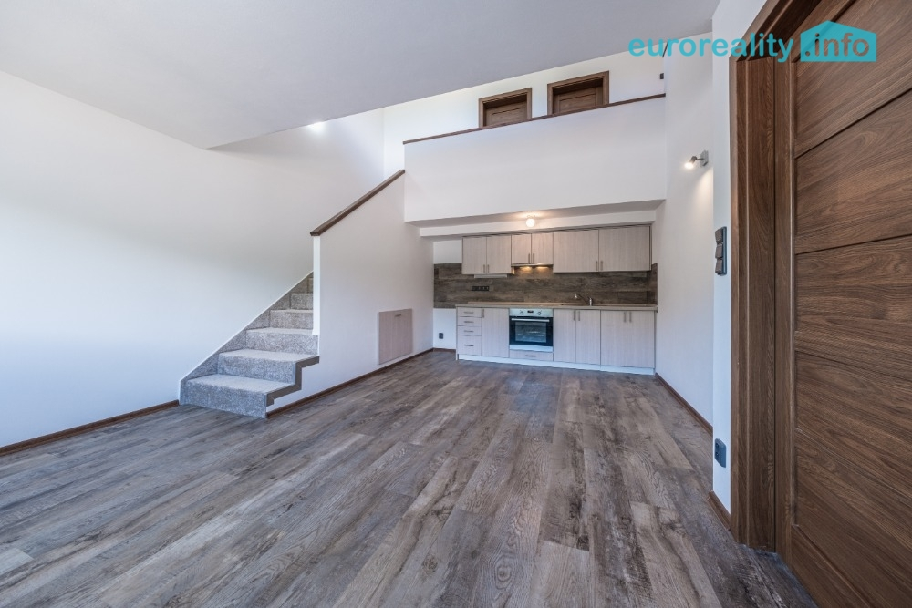Byt disponuje dvěma ložnicemi, prostorným obývacím pokojem s kuchyňským koutem, schodištěm, místem vhodným pro šatnu či pracovnu a velkou lodžií. K bytu náleží společná kolárna/kočárkárna.