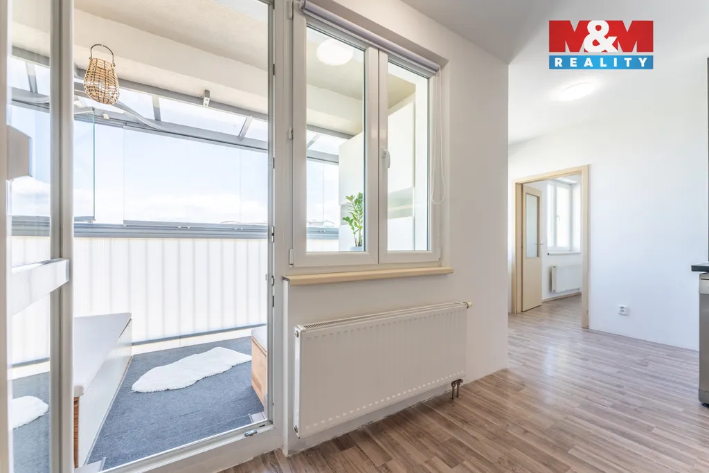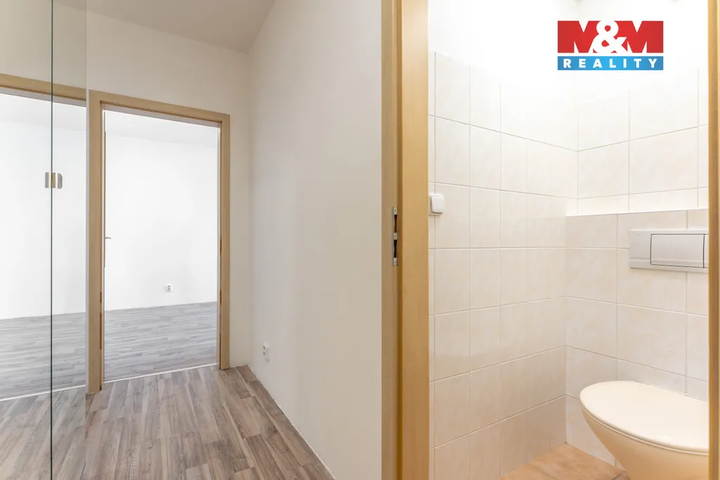 Byt je velmi dobrém stavu náleží k němu zasklená lodžie a komora na patře. Dispozice zahrnuje obývací pokoj s kuchyňským koutem a vstupem na lodžii, dva neprůchozí pokoje, komoru, koupelnu, samostatné WC a chodbu.