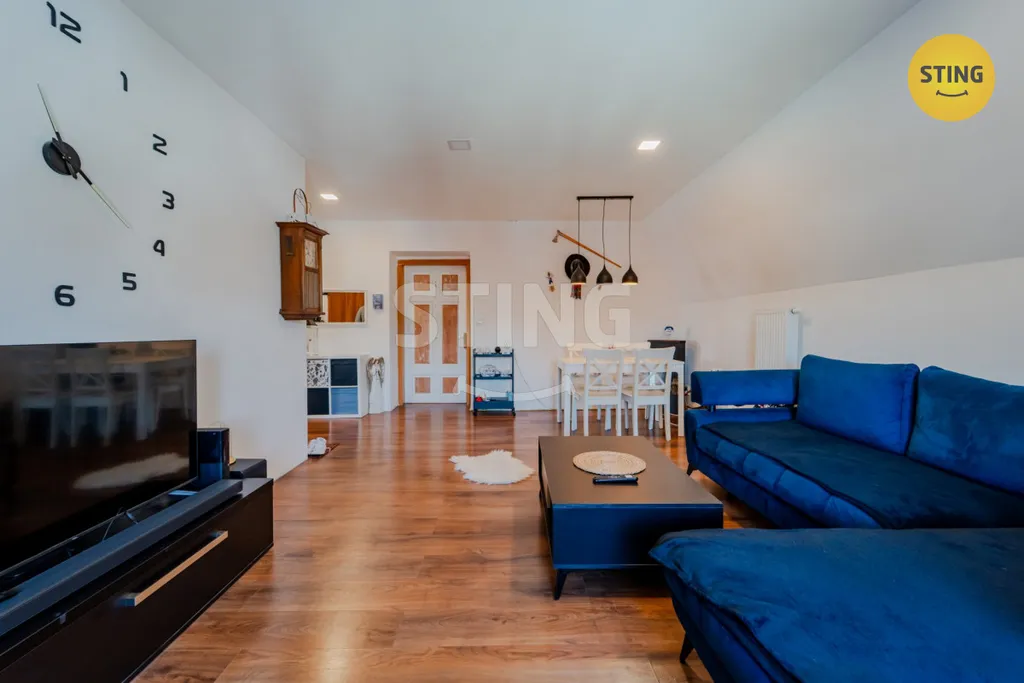 Jedná se o atypický podkrovní byt s osobitou atmosférou a dostatkem prostoru pro větší rodinu nebo pro ty, kteří hledají nadstandardní obytnou plochu.
