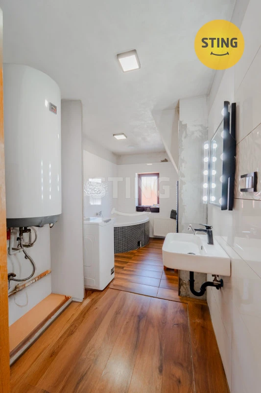 K dokončení zůstává koupelna – aktuálně chybí pohledové prvky, jako jsou obklady a část podlahy. Nový majitel si tak může finální podobu koupelny přizpůsobit dle vlastních představ.