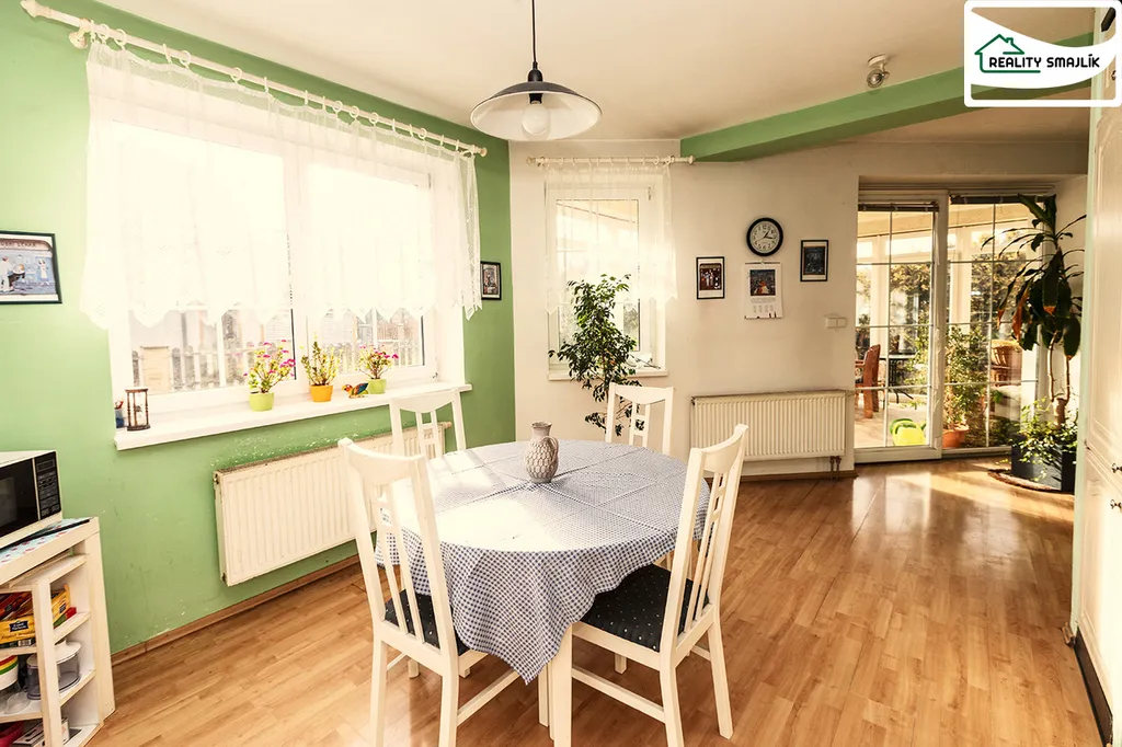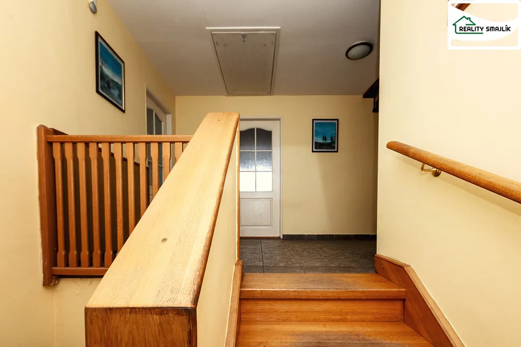 V patře se nachází samostatná bytová jednotka o dispozici 4+kk, která poskytuje dostatek soukromí i prostoru pro další členy rodiny či hosty.