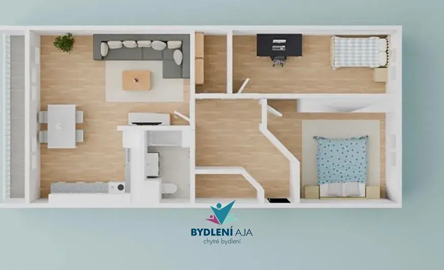 Byt je částečně zařízený a díky praktickému dispozičnímu řešení je vhodný jak pro pár, tak pro rodinu. K bytu náleží také komora na chodbě, která poskytuje praktický úložný prostor.
