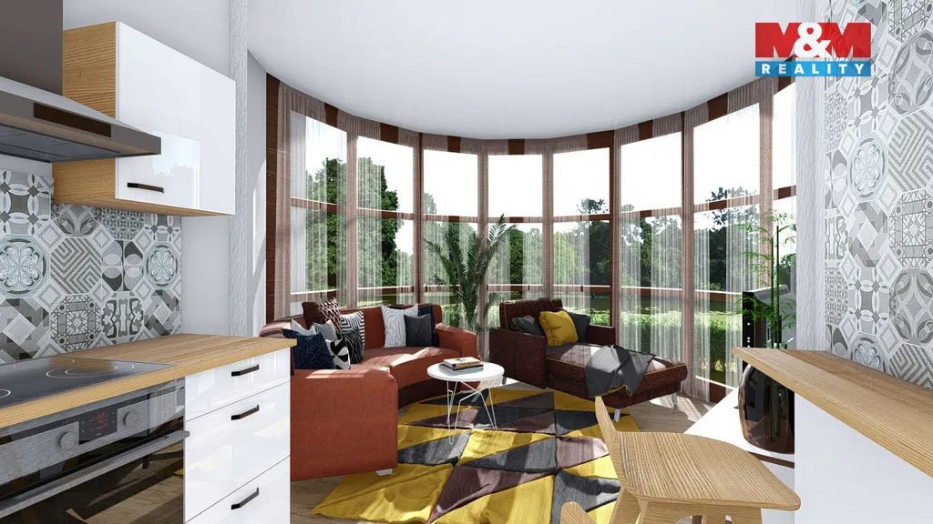 Díky prosklené stěně a francouzskými dveřmi se vstupem do zahrady je byt velmi světlý, s pozitivní energií. Je vhodný pro moderní bydlení, ale nabízí se zde i možnost využití jako ateliéru pro umělce, nebo reprezentativních prostor pro kancelář firmy.