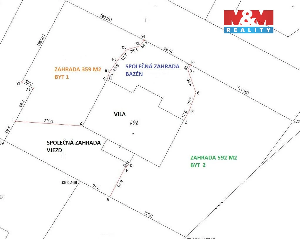 Vila se třemi bytovými jednotkami se nachází v atraktivní vilové části Mukařova, přičemž hned za domem je les.