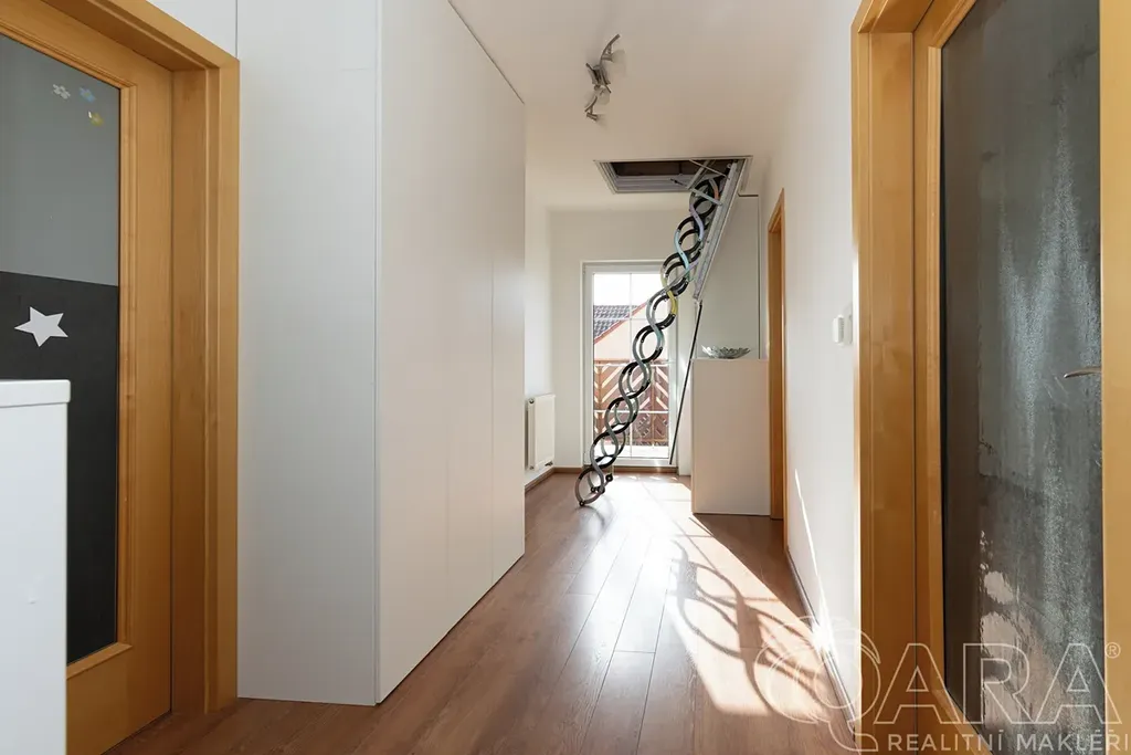 Nabízíme k prodeji krajový řadový rodinný dům v atraktivní a klidné části obce Dolní Břežany, okres Praha-západ. Dům disponuje obytnou plochou 146 m² a zastavěnou plochou 89 m² a nachází se na pozemku o celkové výměře 485 m². Součástí dispozice přízemí domu je prostorný obývací pokoj s krbovými kamny a kuchyňským koutem s na míru vyrobenou kuchyňskou linkou. V patře jsou pak 3 pokoje, kde u jednoho z nich je také na míru zhotovená praktická šatna. Součástí domu je prostorná garáž a prakticky řešený půdní prostor s dostatkem úložného místa. Vytápění zajišťuje plynový kotel a horní podlaží má klimatizaci. K nemovitosti náleží krásná vzrostlá zahrada se zahradním domkem, která poskytuje příjemné zázemí pro relaxaci i hobby aktivity.