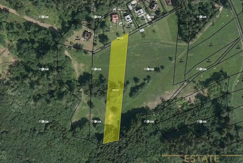 Nabízíme k prodeji spoluvlastnický podíl ve výši id. 1/2 na 2 pozemcích v k.ú. Seč u Lipové, okres Prostějov. Jedná se o parcely č. 241/11, 241/17 zapsané na LV 250 o podílové výměře 1245 m2 (podíly přepočítány). Šířka pozemků činí cca 19m. Dle katastru jsou evidovány jako trvalý travní porost a ostatní plocha, vzájemně sousedí a územním plánu leží ve stávajících plochách zemědělských. Na pozemcích je uzavřena pachtovní smlouva na dobu neurčitou s výpovědní lhůtou 1 rok.