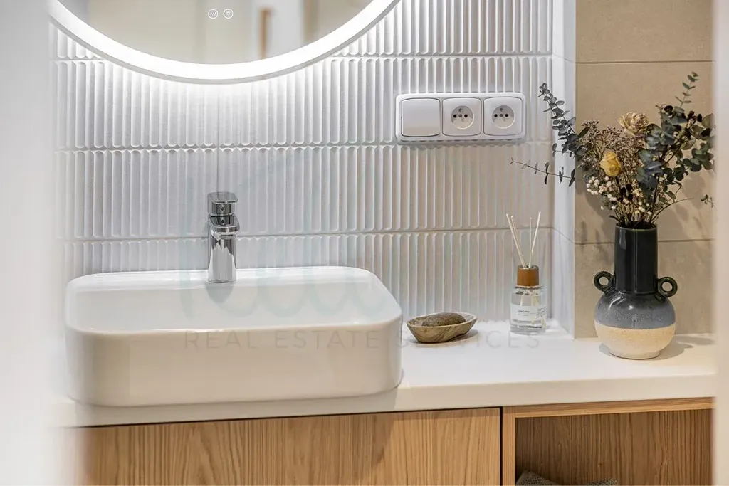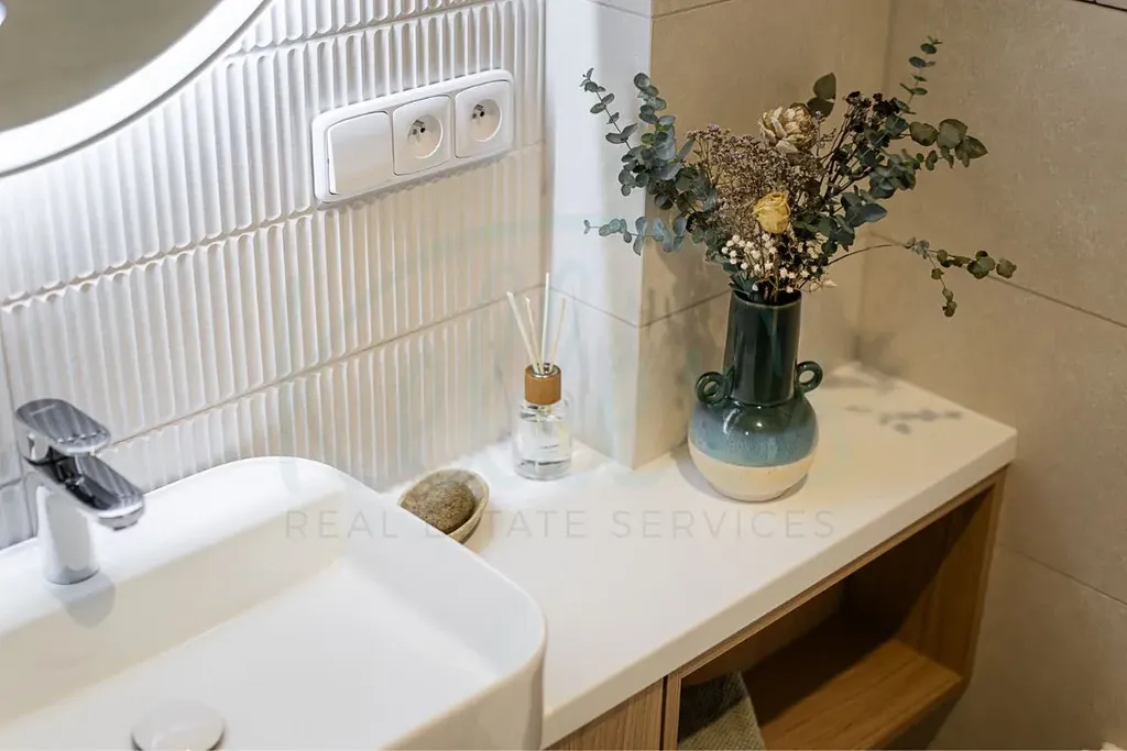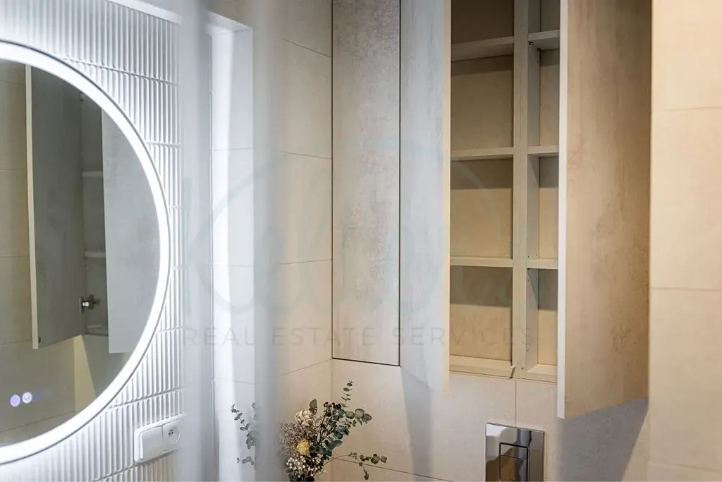 K proměně bytu jsme přistupovali tak, abychom i na malém prostoru maximálně využili jeho potenciál jak po stránce praktičnosti, tak i estetiky. Rekonstrukce zahrnovala nové elektrické rozvody, nové rozvody vody a odpadu, vinylovou podlahu v dubovém dekoru, hladké sádrové omítky, SDK podhled a dlažbu i obklady z nové trendové kolekce značky Marazzi.