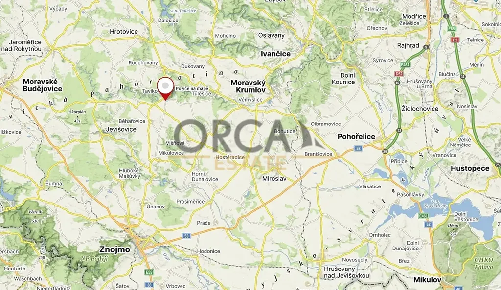 Nabízím k prodeji exkluzivní investiční příležitost v obci Tavíkovice (okrese Znojmo). Jedná se o parcelu č. 1297 o celkové výměře 1950 m², zapsán na LV 524. Dle katastru je evidován jako orná půda. Šířka pozemku je cca 15 m. Část pozemku se nachází v návrhové ploše Z17 smíšené obytné venkovské (SV). Podmínky využití ploch SV a návrhové plochy Z17 vkládám do fotodokumentace. Ochranné pásmo nadzemního vedení VN je 7m od krajního vodiče na každou stranu. Přibližná míra zastavitelnosti je 762 m2, taktéž přikládám pro představu do snímků. Pozemek je propachtován na dobu neurčitou s roční výpovědní lhůtou.