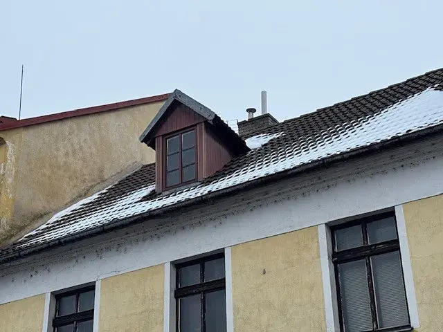 Střecha budovy je sedlová s krytinou z tašek. Na střeše jsou žlaby se svody a vikýře. Součástí střechy