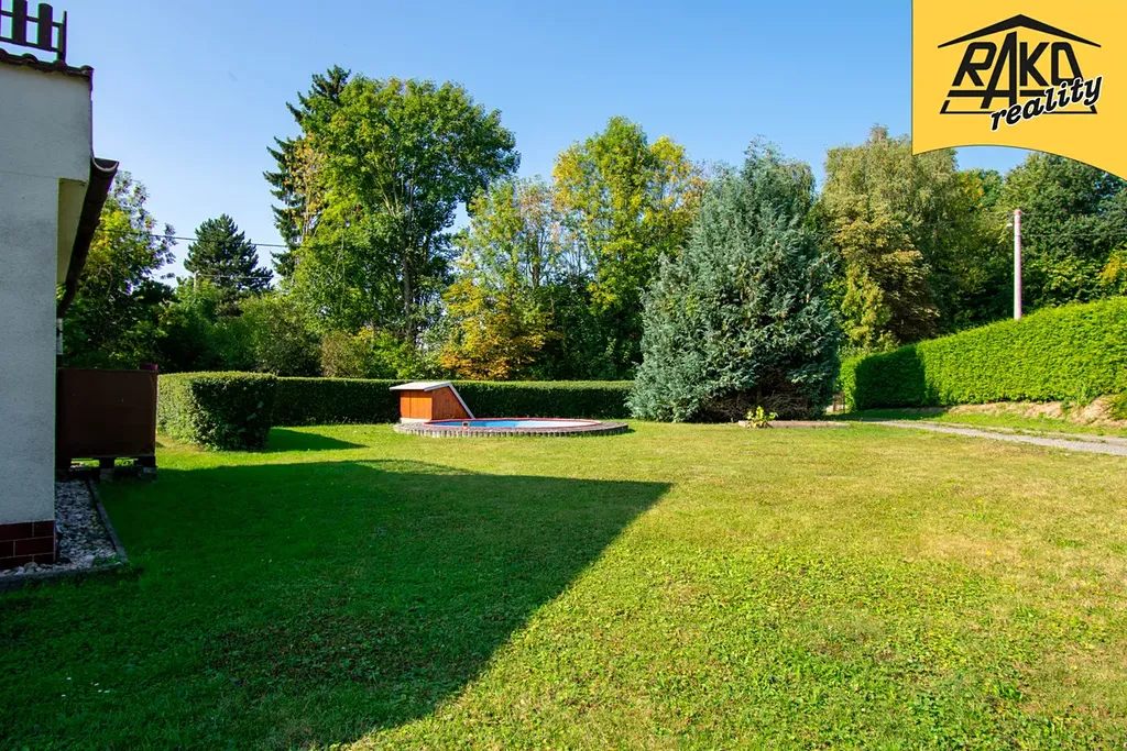 Dům s aktuální dispozicí 5+kk byl původně klasickou dřevěnicí, která byla odstraněna a v roce 1997 byla zkolaudována nová stavba. Rodinný dům s vedlejší stavbou obklopuje zahrada o výměře cca 1100 m2. Celkově oplocený pozemek, který je rovinatý s vlastním vjezdem má výměru 1750 m2. Zahrada je krásně udržovaná a opečovávaná s láskou. Na pozemku je umístěn dřevěný přístřešek na uskladnění dřeva, venkovní bazén (zabudovaný), skleník a venkovní sprcha. Vedlejší stavba, na kterou navazuje zastřešené venkovní posezení (21 m2) obsahuje velkou garáž s dílnou o výměře 40 m2, dále letní místnost s kamny (18,5 m2), kde je možné posedět v chladnějších dnech. Nad garáží a letní místností je prostorná půda na uskladnění například sena. Jsou zde též různé úložné prostory na uskladnění například zahradního nářadí.