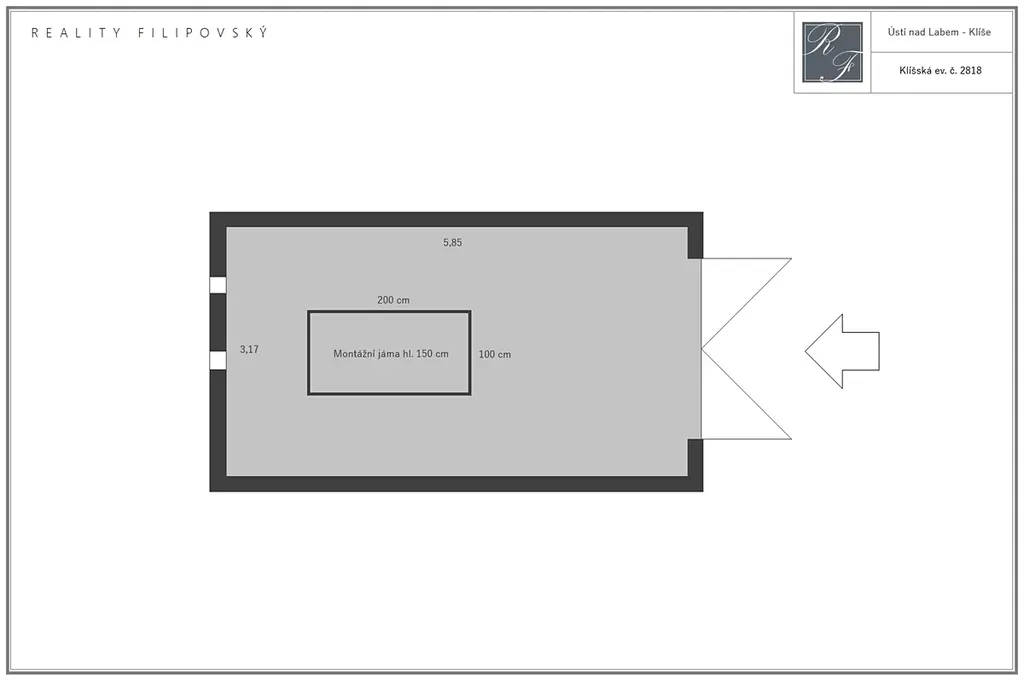 Garáž se nachází ve vyhledávané části Ústí nad Labem – centrum, je ve velmi dobrém stavu s připojením na elektřinu a disponuje plnohodnotnou montážní jámou o rozměrech 2x1 metr a s hloubkou 1,5 metru.