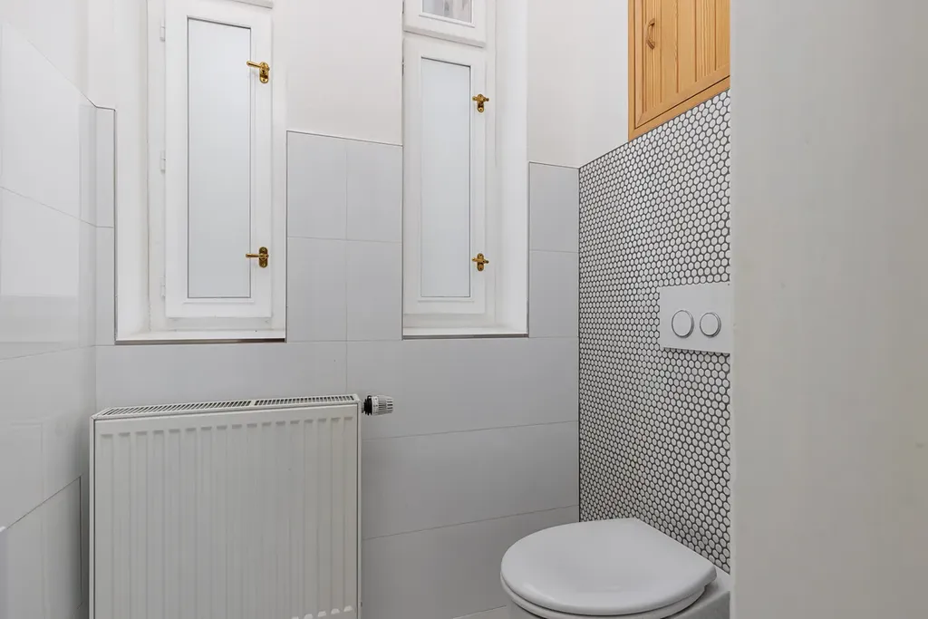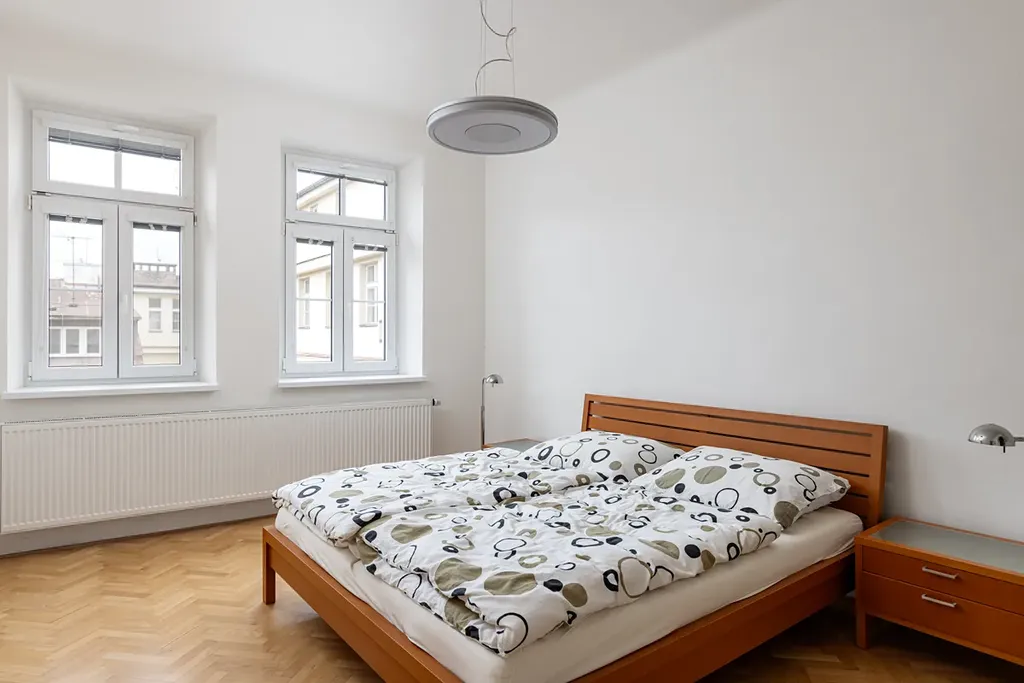 Světlý a plně vybavený byt 2+1 o podlahové ploše 68 m² se nachází ve 4. nadzemním podlaží domu v ulici Ve Smečkách, v samotném centru Prahy. Byt nabízí funkční a praktickou dispozici s dostatkem úložného prostoru, včetně samostatné šatny navazující na ložnici. Podlahy dřevěné - parkety / dlažba v koupelně a WC.