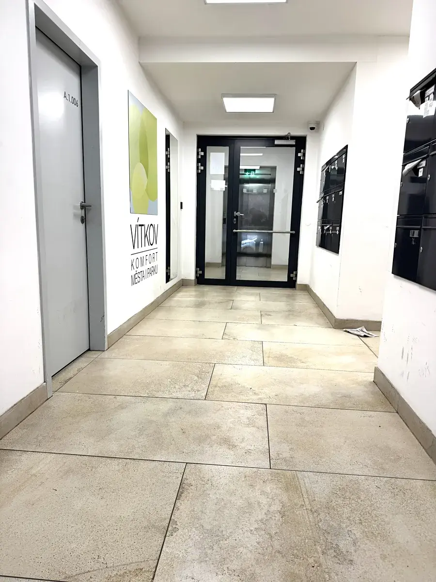Byt disponuje prostorným obývacím pokojem s kuchyňským koutem, který je vybaven vestavěnými spotřebiči. Dále zde najdete vstupní předsíň s vestavěnou skříní a moderní koupelnu se sprchovým koutem, toaletou a pračkou.